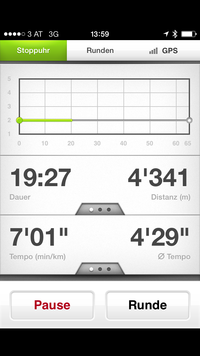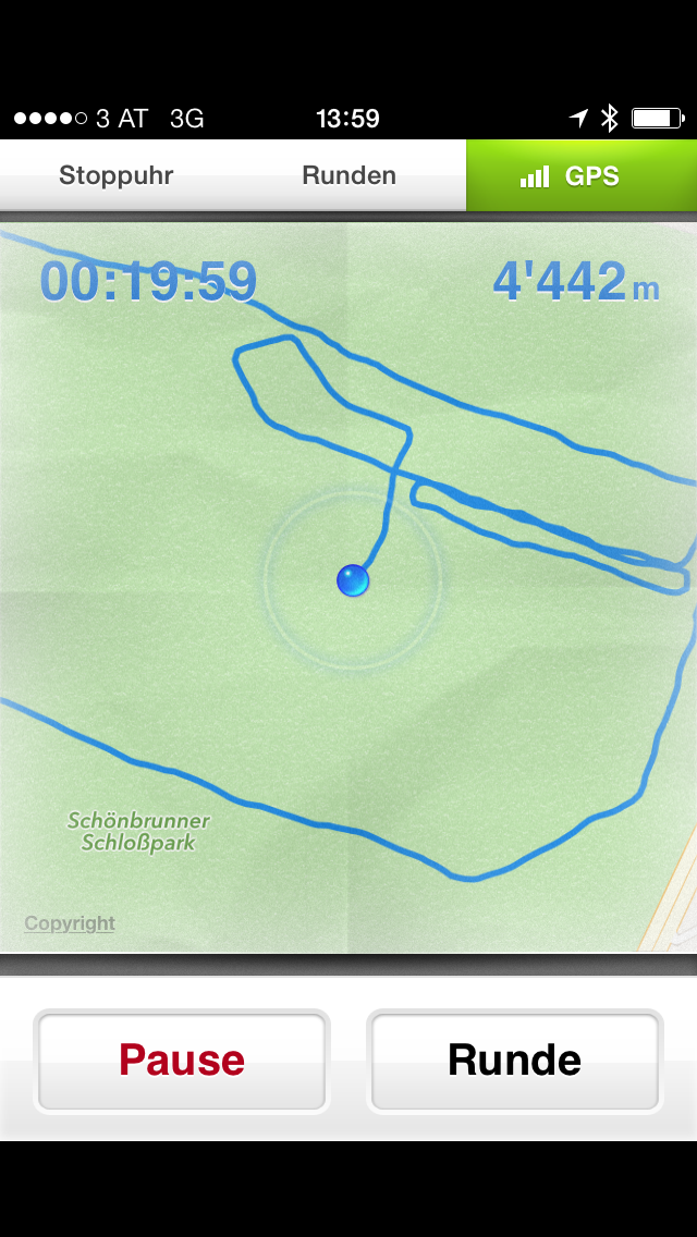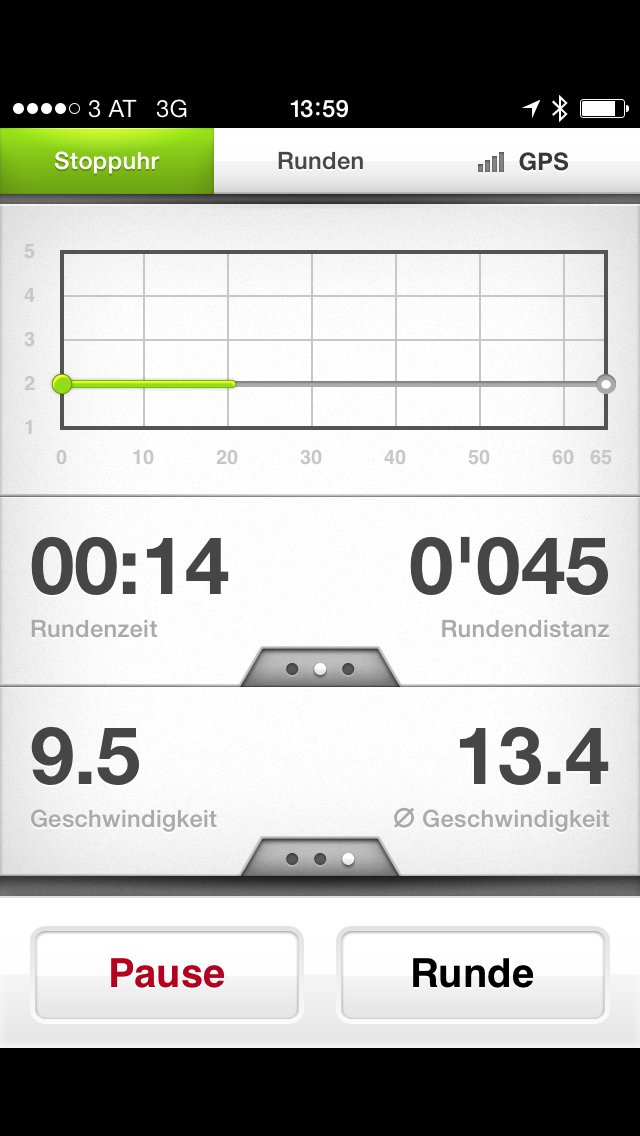 Running.Coach gibt die ermittelte Distanz auf den Meter genau aus. Die GPS-Werte stimmten weitgehend mit den Vergleichswerten des Garmin Forerunner überein.
