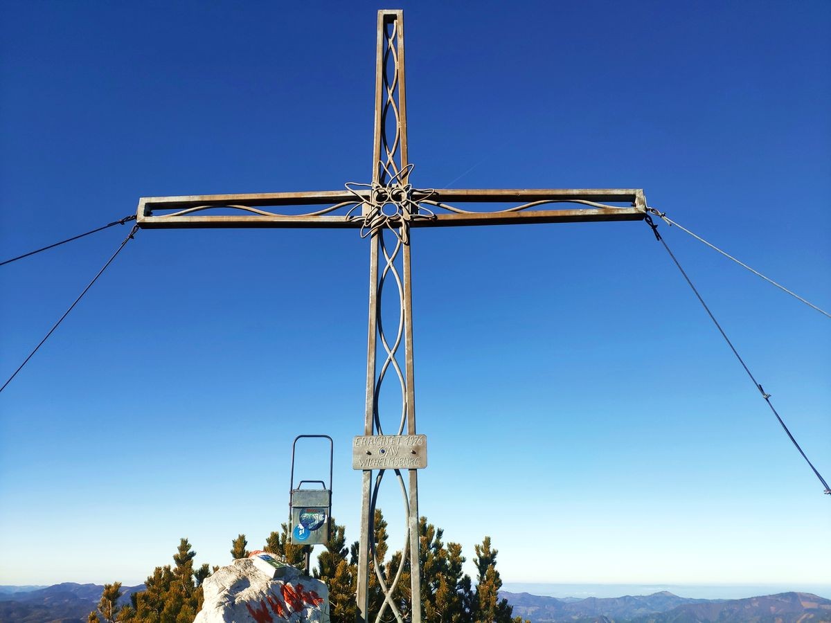 Ja, ein großes Gipfelkreuz aus Stahl ist vorhanden.