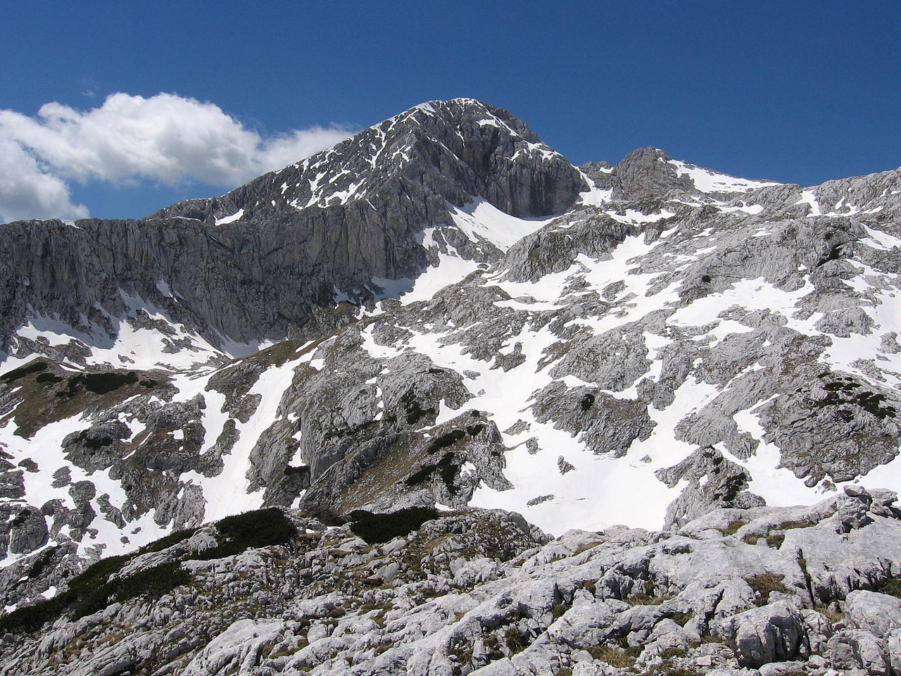 Grintovec - ein 2558 Meter hoher Berg in Slowenien. Der Berg befindet sich in der Gebirgsgruppe Steiner Alpen. In der Gebirgsgruppe Steiner Alpen nimmt der Grintovec den höchsten Punkt ein.