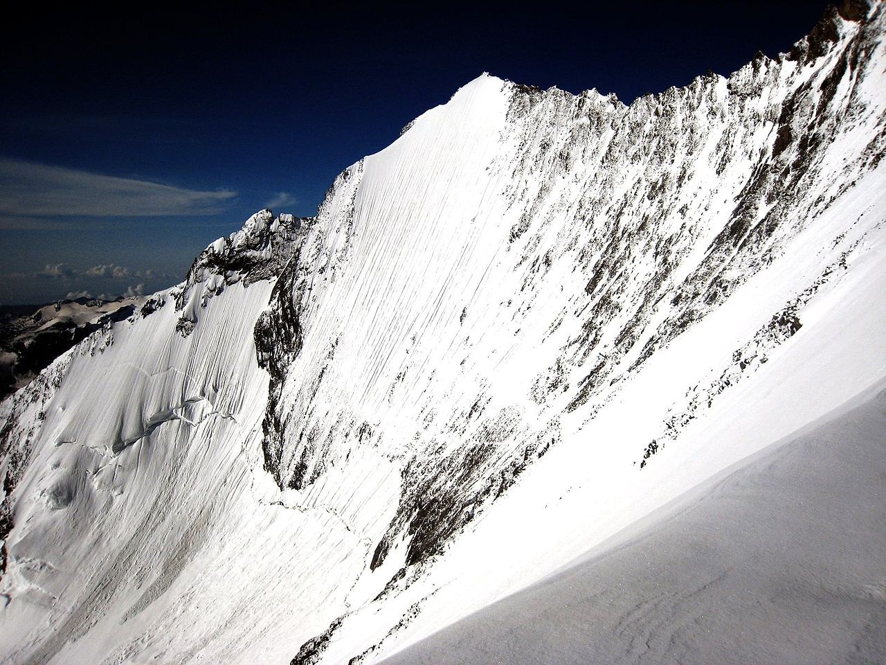 Lenzspitze - ein 4294 Meter hoher Berg in Schweiz (Wallis). Der Berg befindet sich in der Gebirgsgruppe Walliser Alpen. In den Alpen ist der Berg einer von insgesamt 82 Viertausendern. Der Berg wurde erstmals im Jahr 1870 erfolgreich bestiegen.Dominanz (in km)