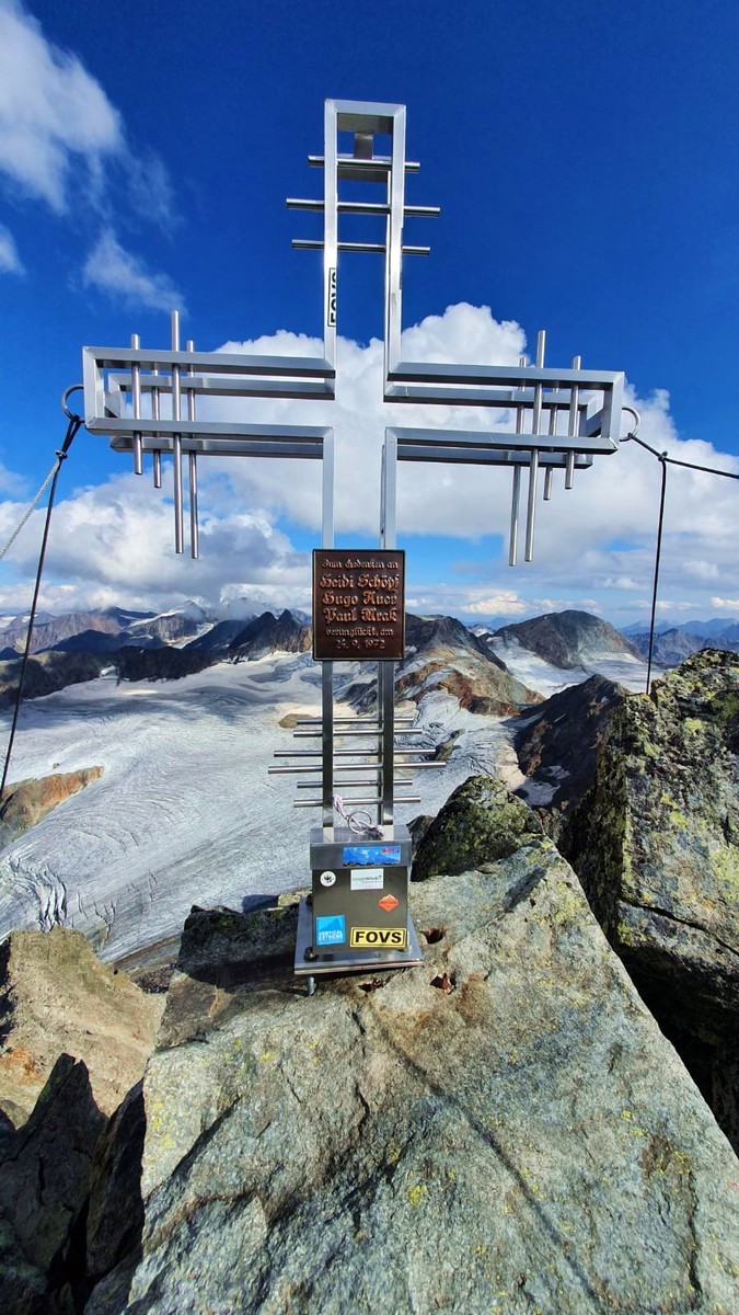 Auf dem Gipfel gibt es ein Gipfelkreuz mit Gipfelbuch.