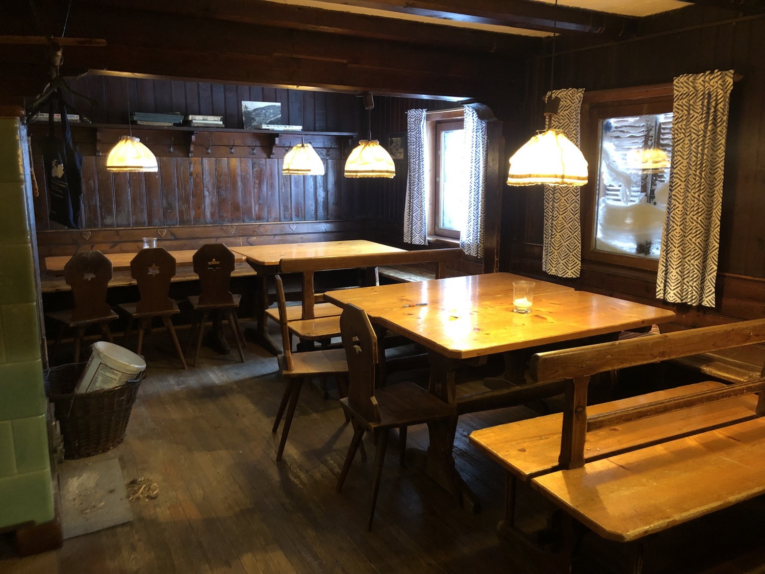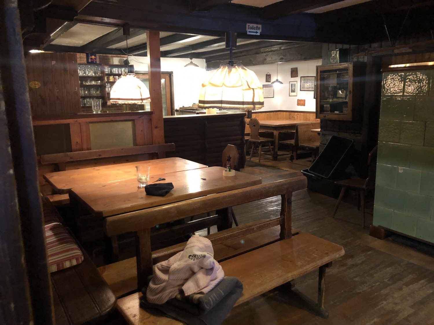 - ein großer Schankraum mit Kachelofen