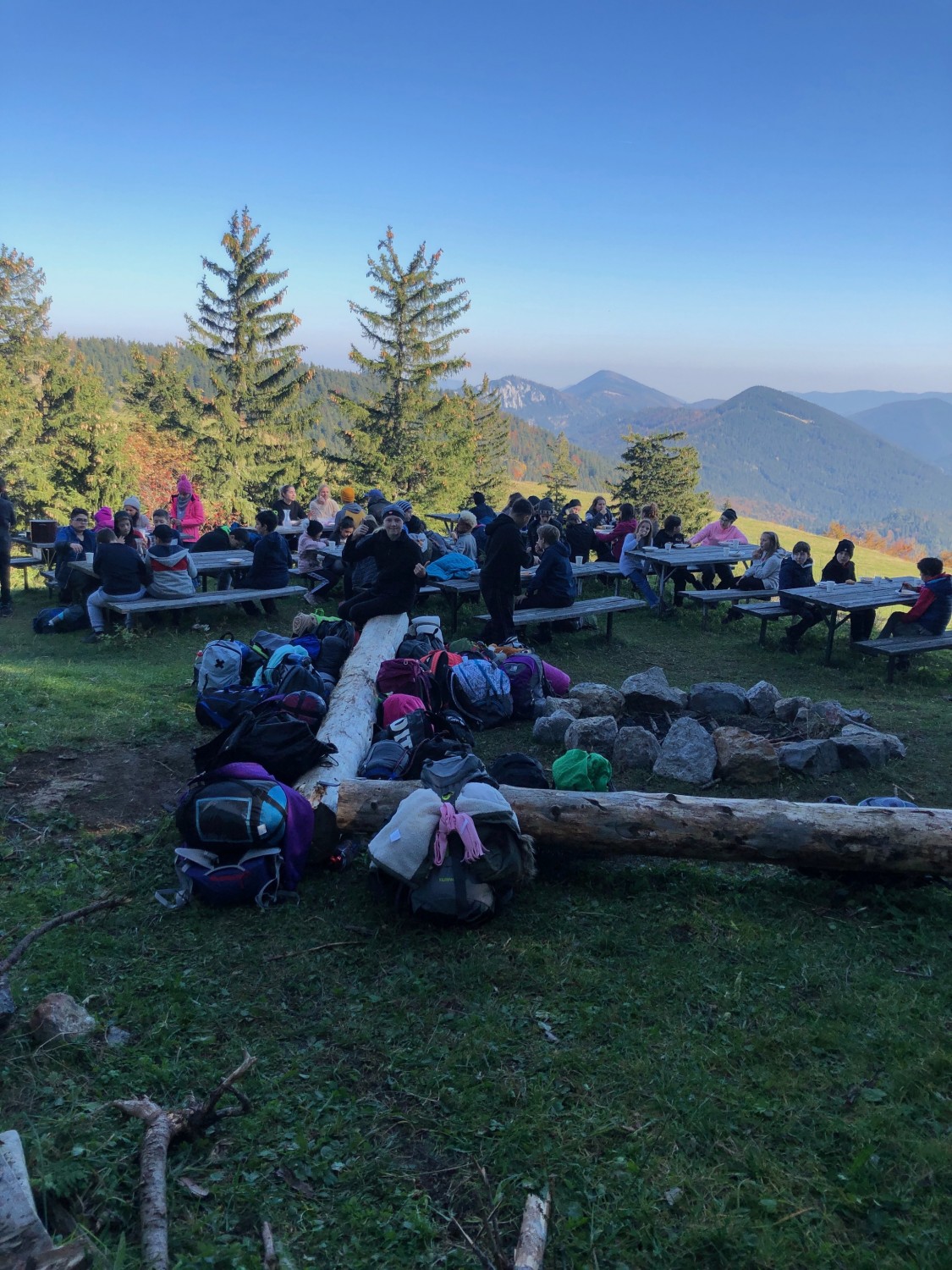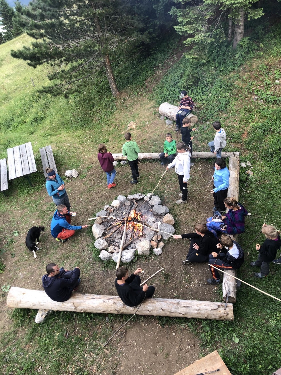 - große Naturterrasse mit Tischen und Grill- und Lagerfeuerplatz