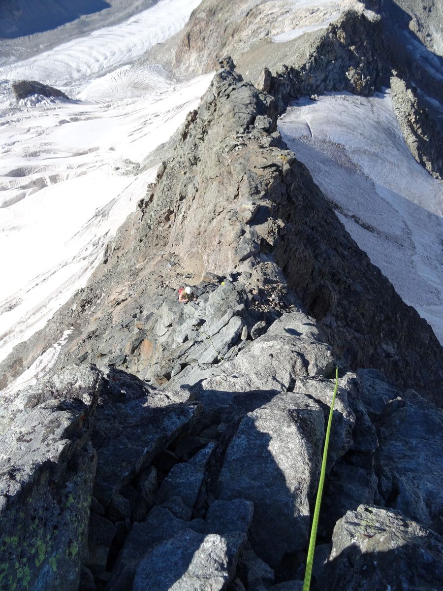Anspruchsvolle und sehr lange Tour. Obwohl es vom Beginn des Biancogrates nur rund 600 Höhenmeter bis zum Gipfel sind, zieht sich der Grat ordentlich in die Länge.
