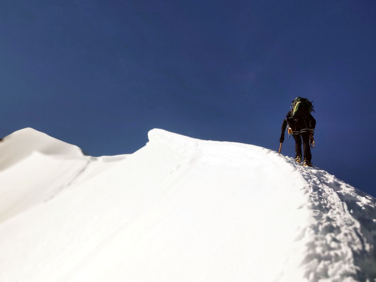 Anspruchsvolle Alternative: Vom Piz Bernina ist auch der direkte Abstieg über den Biancograt möglich
