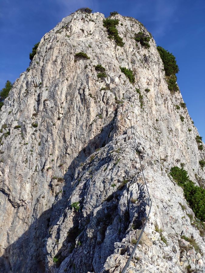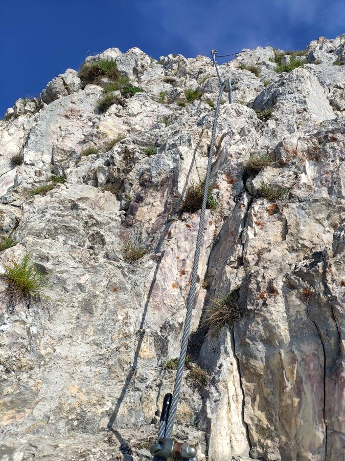 Der Grete-Klinger-Steig hat nur vereinzelt einige anspruchsvollere Stellen, für die es aber kein Klettersteig-Set benötigt. Aufgrund der Länge der Tour wäre dieses unnötiger Ballast.