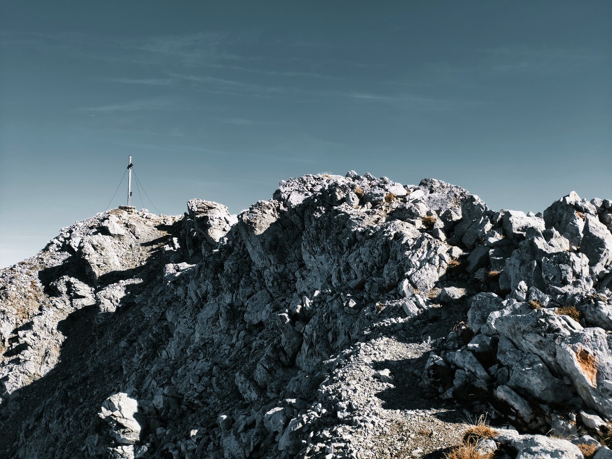 - Ansonsten anfangs im leichten Gelände weiter am Grat entlang Richtung Gabelspitze, wo nun nur noch Steinmänner den Weg weisen.