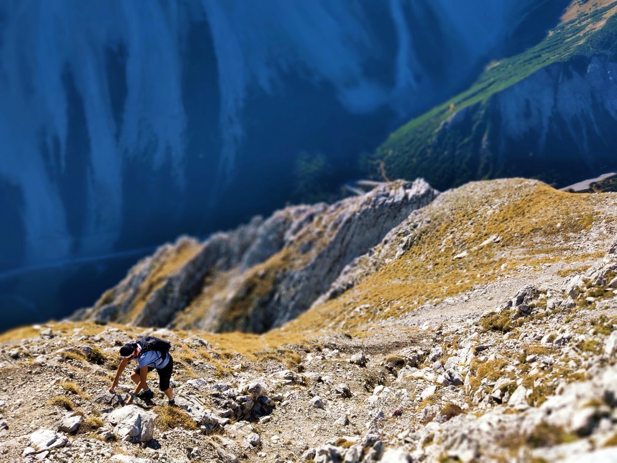 - Nun wird das Gelände anspruchsvoll und man bewegt sich großteils im ausgesetzten Gehgelände.