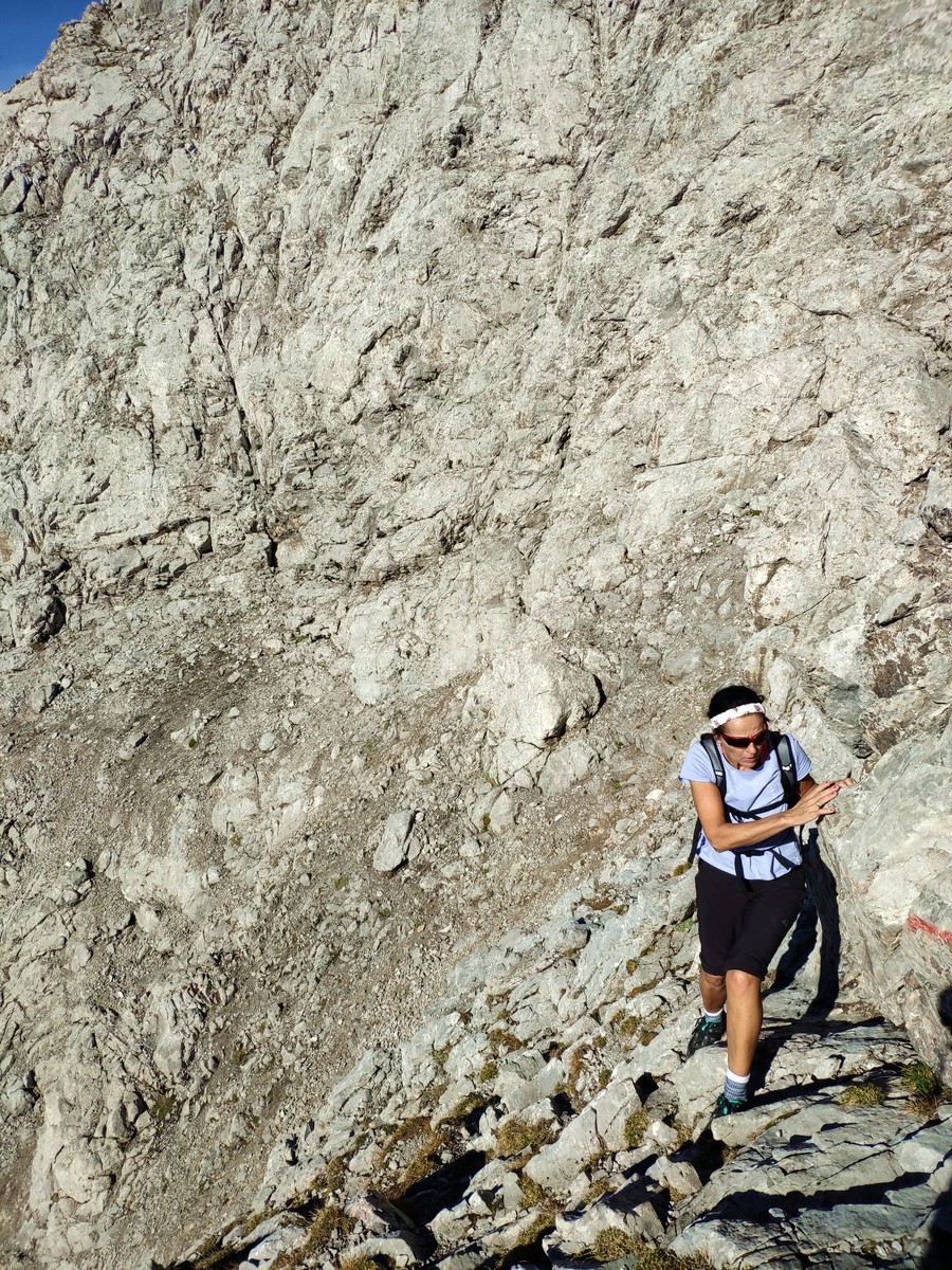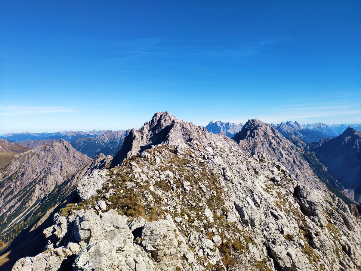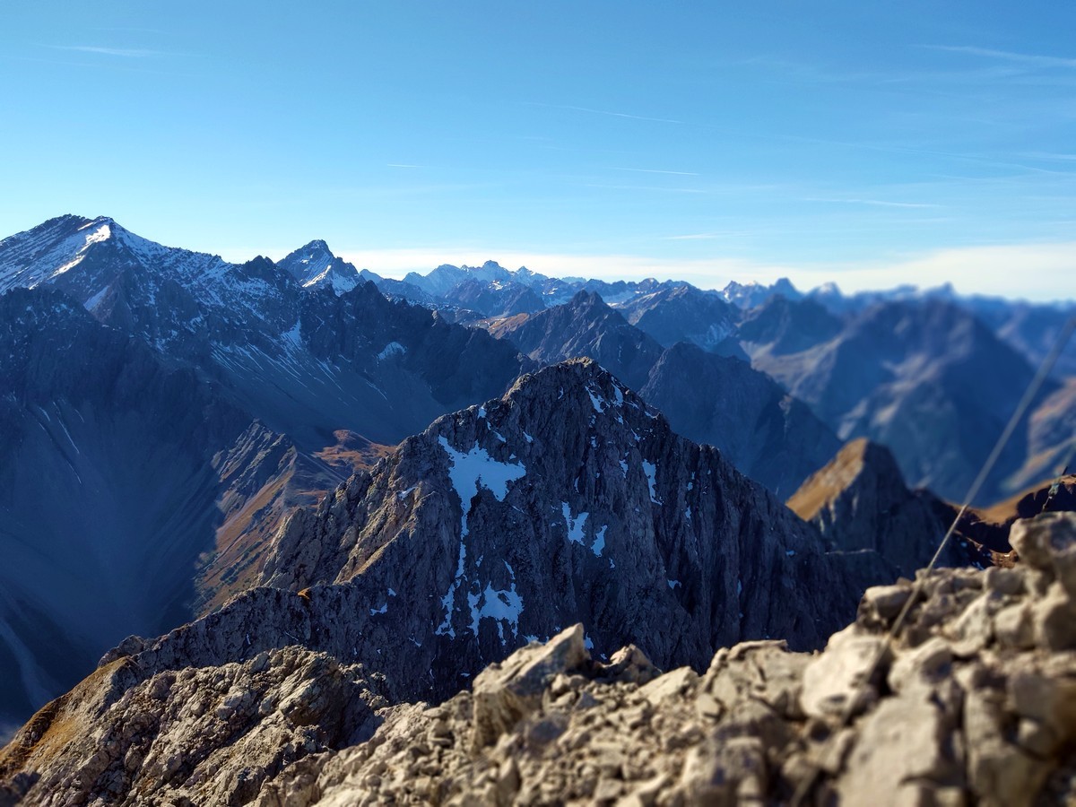 - Wer bereits hier bis hierhin Probleme hatte, sollte den nun gut 1 km langen weiteren Grat zur Gabelspitze auslassen.