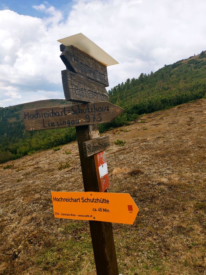 - Start beim zweiten beschilderten Parkplatz im Liesingtal (kurz nach der zweiten Abzweigung zu einem Forstweg)
