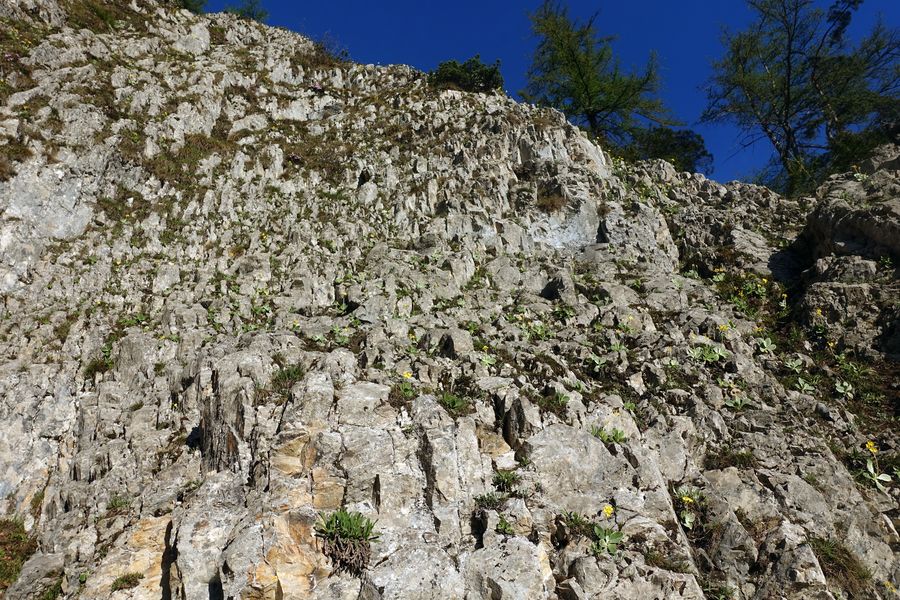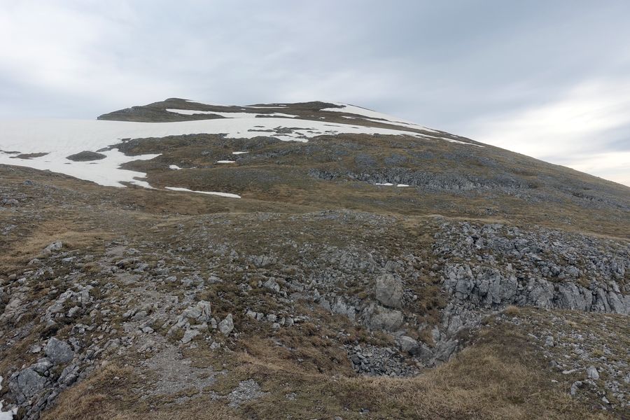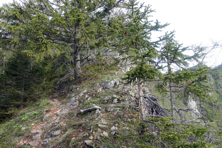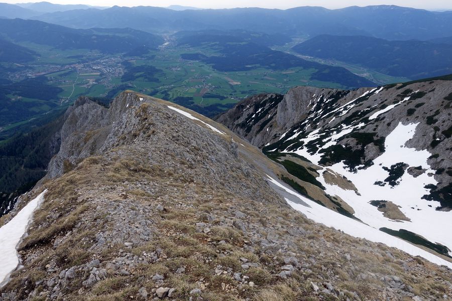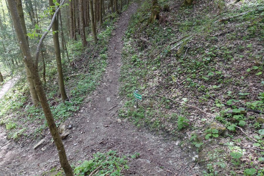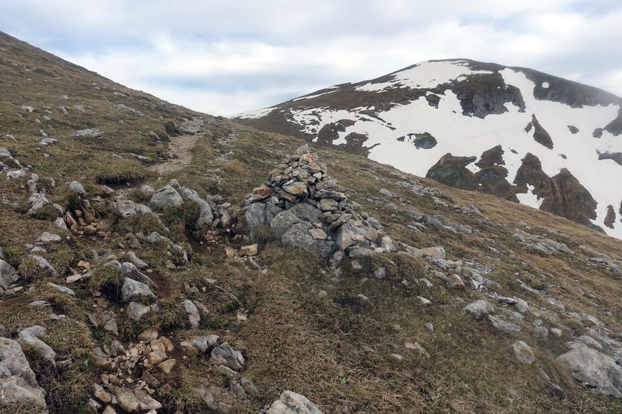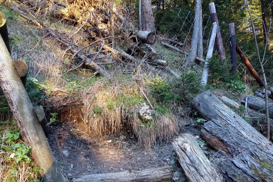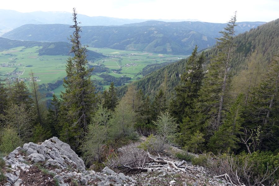 Bergab geht es das erste Stück wieder auf gleichem Wege retour, ehe man bei der Beschilderung nun Weg 693 in den Bechlgraben folgt. Auf diesem geht es in Kehren und Schotterfeldern auf durchgehend markierten Pfaden bergab ins Tal. Teilweise gibt es hier auch im Spätfrühling noch das eine oder andere Schneefeld.