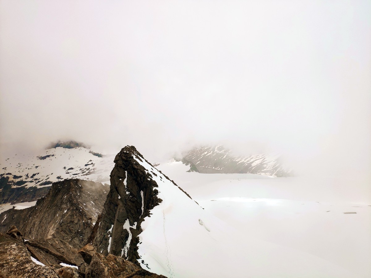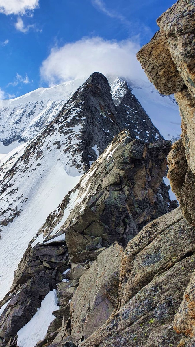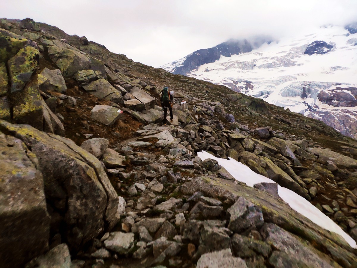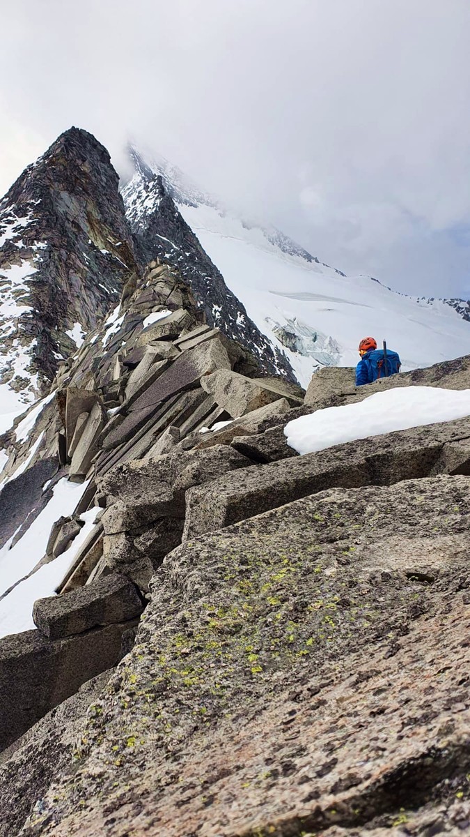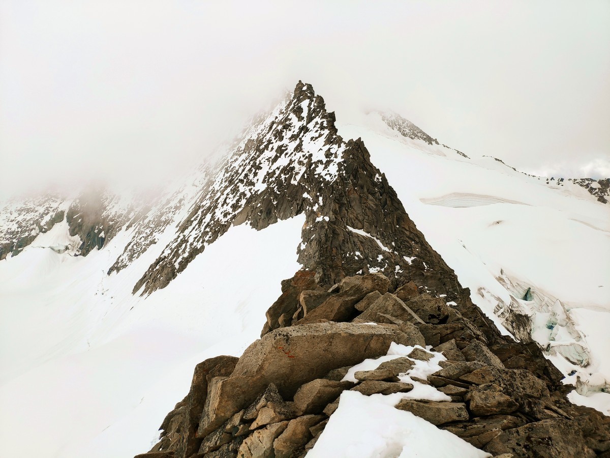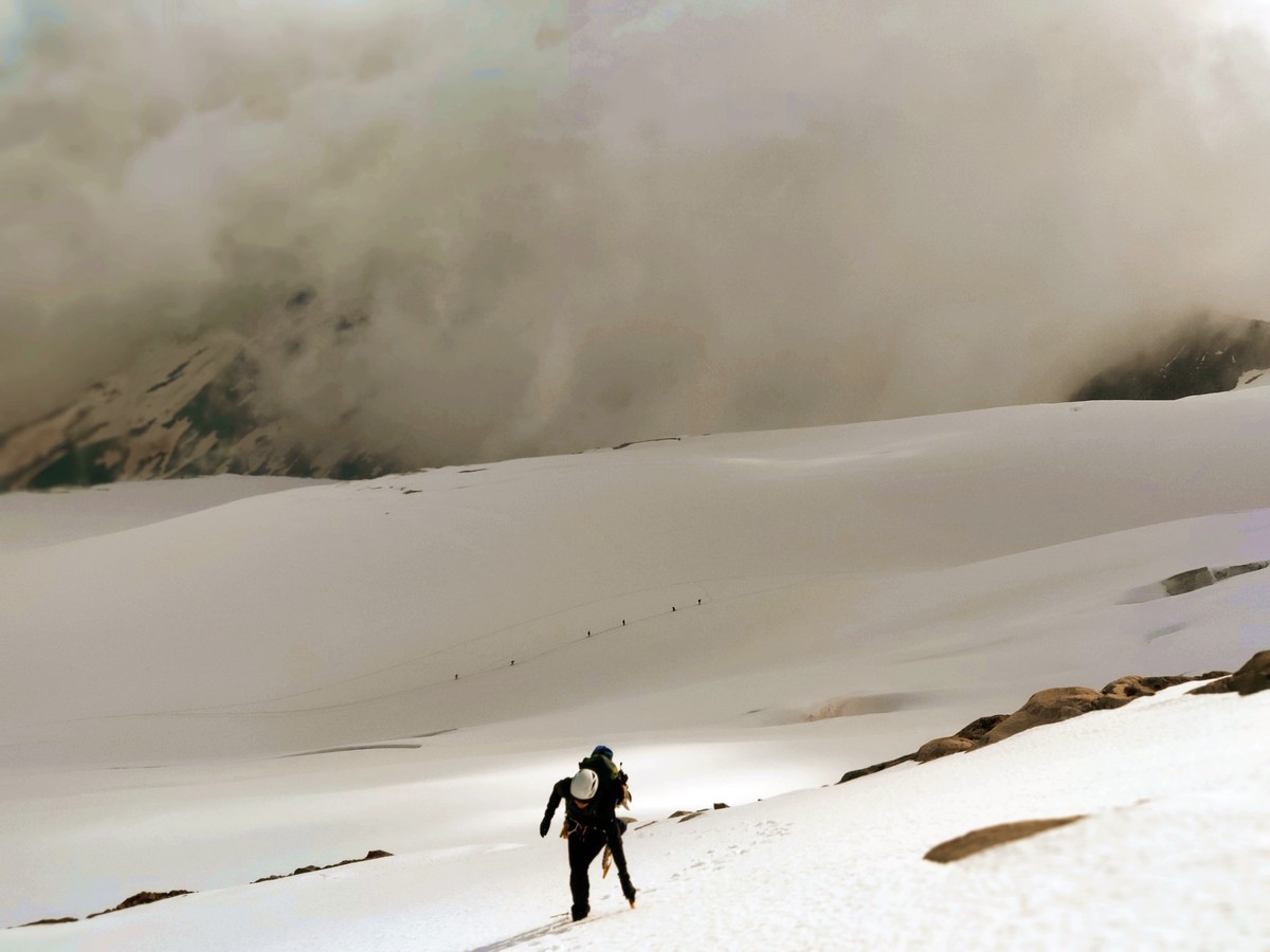 - Zu Beginn des Gletschers für kurze Zeit weiterhin dem Normalweg folgen und danach rechts auf den Beginn des Nordgrats queren.