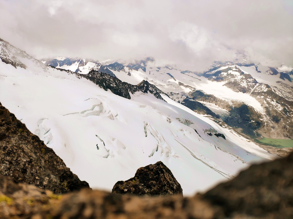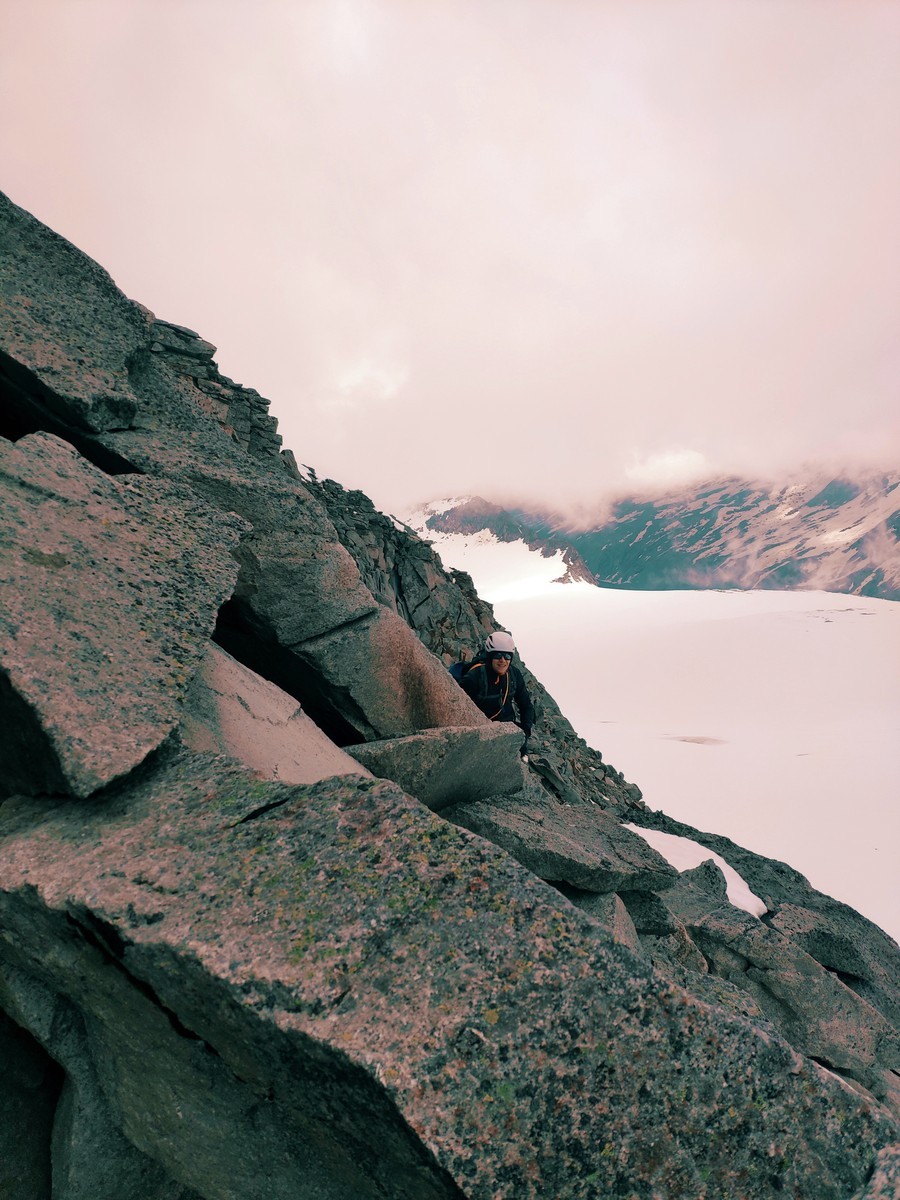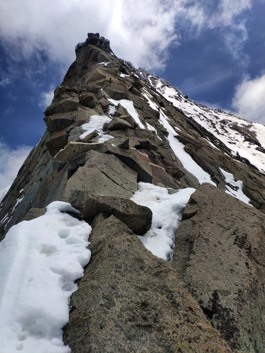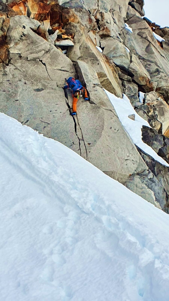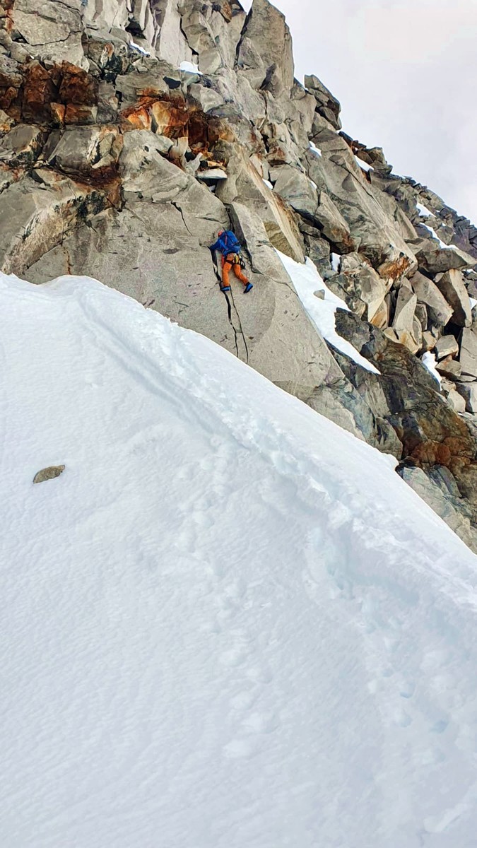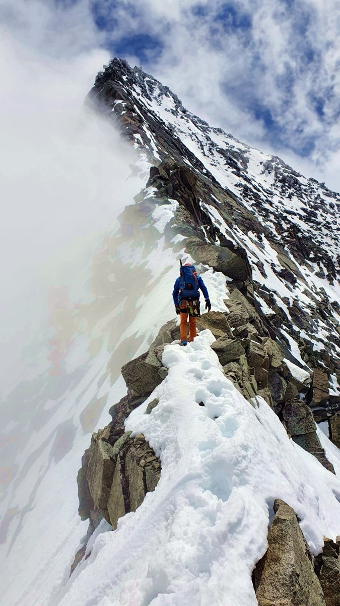 - Zu Beginn des Gletschers für kurze Zeit weiterhin dem Normalweg folgen und danach rechts auf den Beginn des Nordgrats queren.