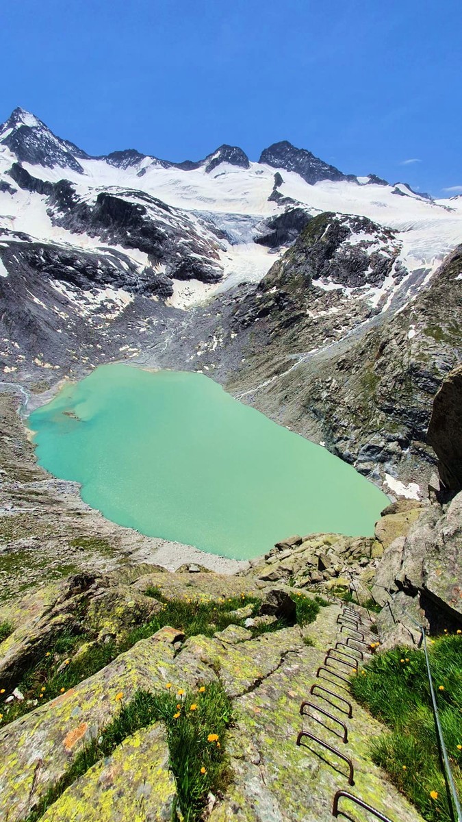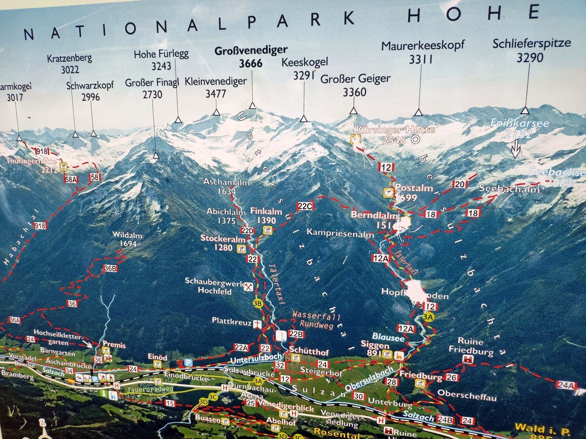 - Nun entweder über den markierten Wanderweg auf die Kürsinger Hütte oder bis zum Gletschersee Obersulzbachtal und dann über einen Klettersteig (Kürsingersteig, Kategorie B) zur Kürsinger Hütte.