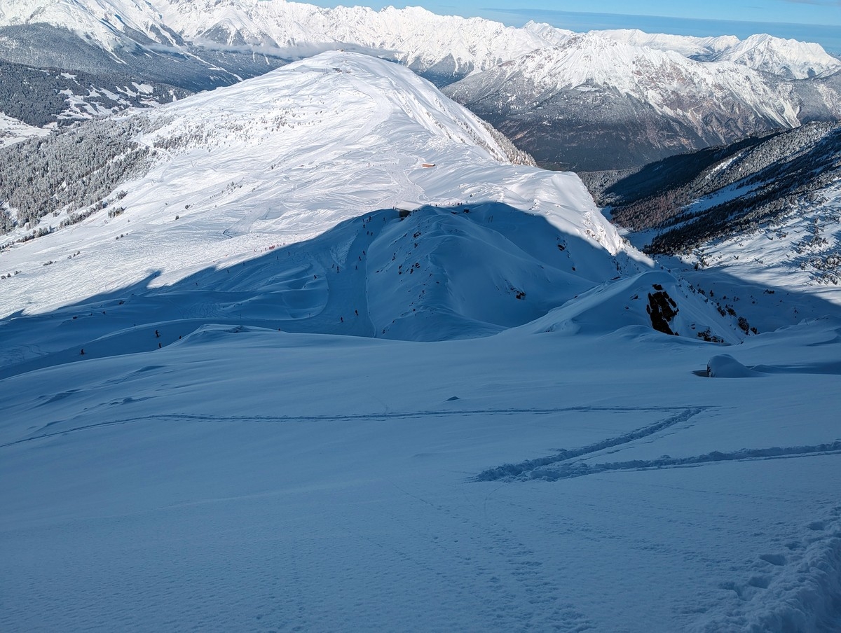 - Bei der Bergstation Hochzeiger könnte man theoretisch auch über den Grat den Gipfel erreichen, dann allerdings ohne Ski. Ansonsten ist die meist genutzte Variante der Aufstieg über den Steilhang kurz vor der Bergstation.