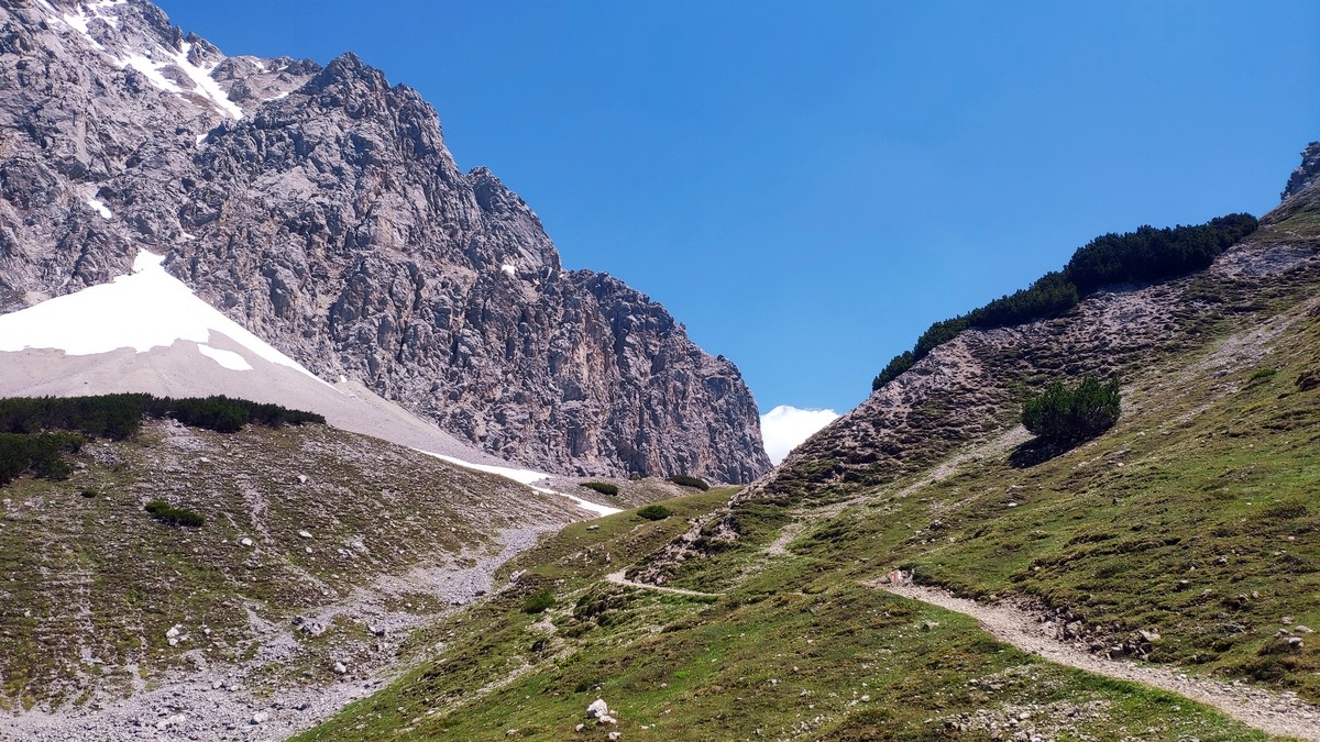 Wer sich das Geröllfeld im Abstieg ersparen möchte, kann den Retourweg über die Marienbergalm wählen.