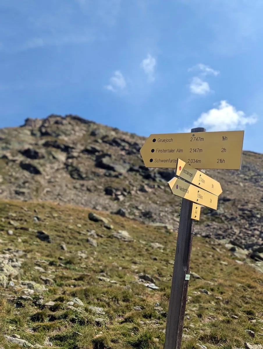 - Vom Gruesee aus weiter zum Gruejoch, wo der markierte Weg endet.