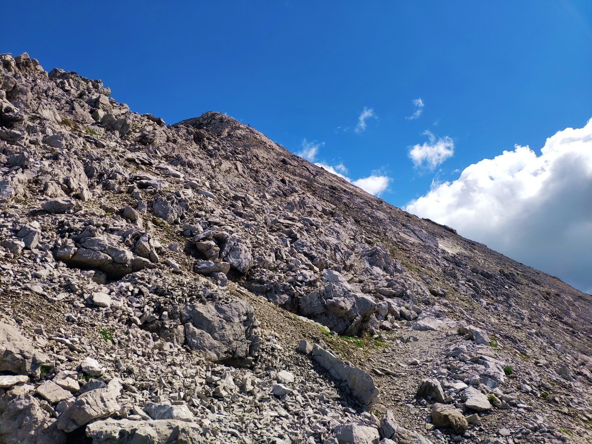Lange Wanderung, die kurzfristig im brüchigen Teil vor der Scharte auch etwas anspruchsvoll ist.