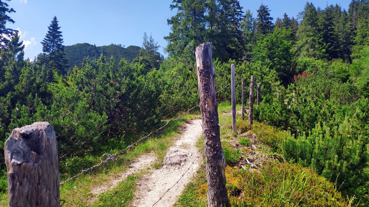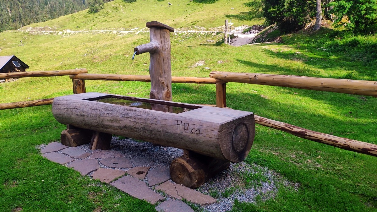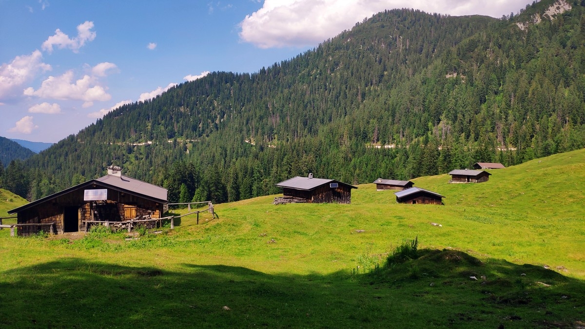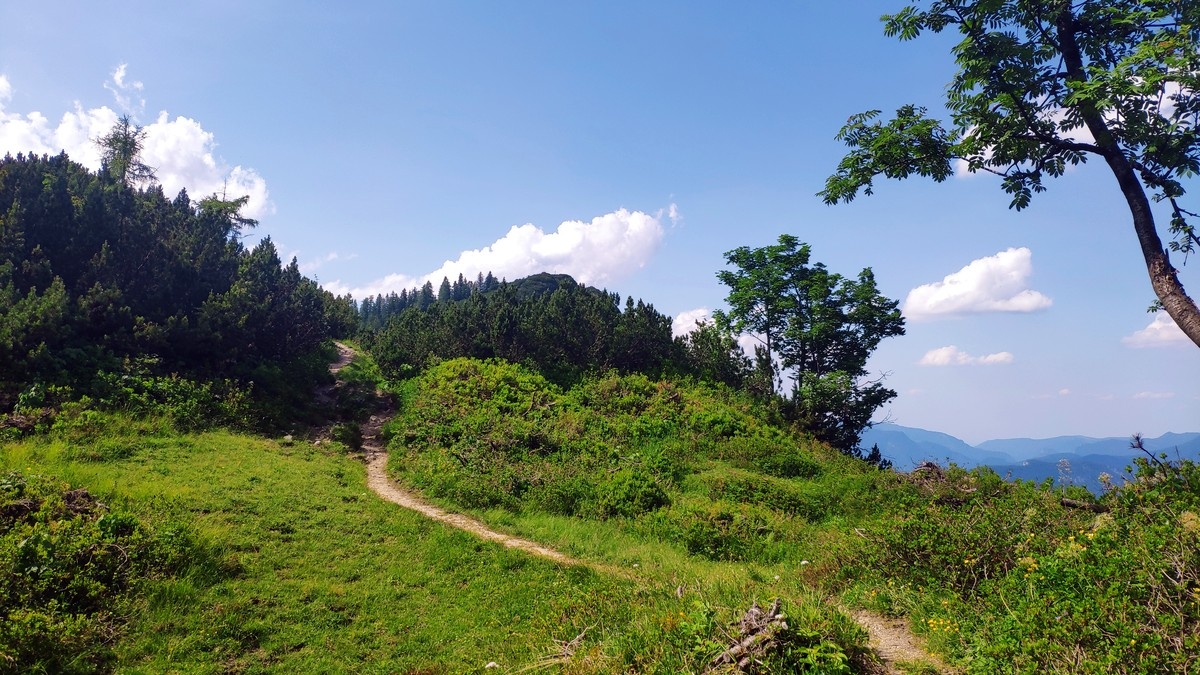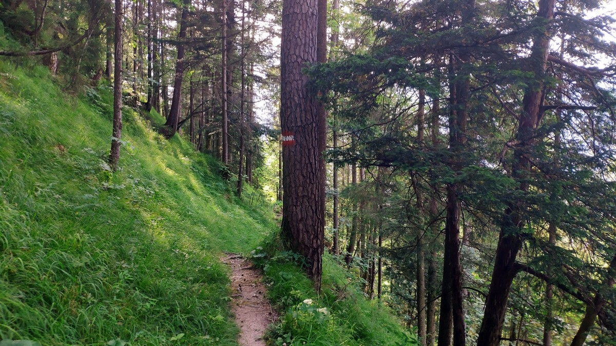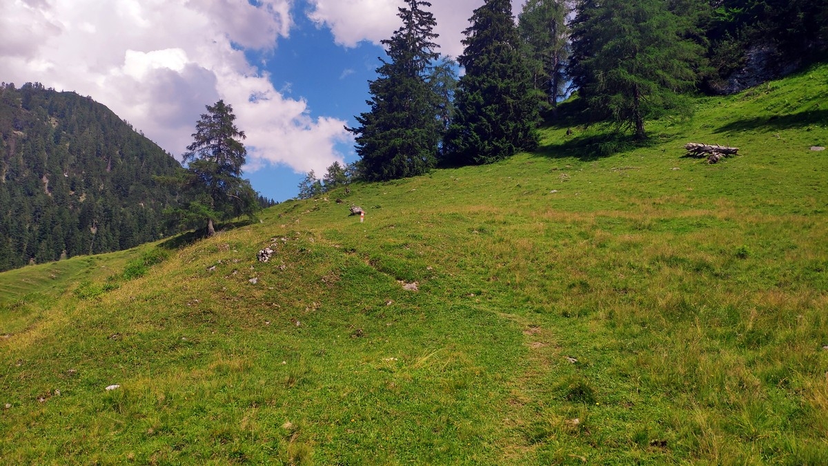 - Ab der nicht-bewirtschafteten Scheffnother Alm (inkl. Trinkbrunnen) ist der Weiterweg deutlich angenehmer. Dort halbrechts über einen markierten Weg auf einer Wiese aufsteigen und danach weiter durch den Wald.