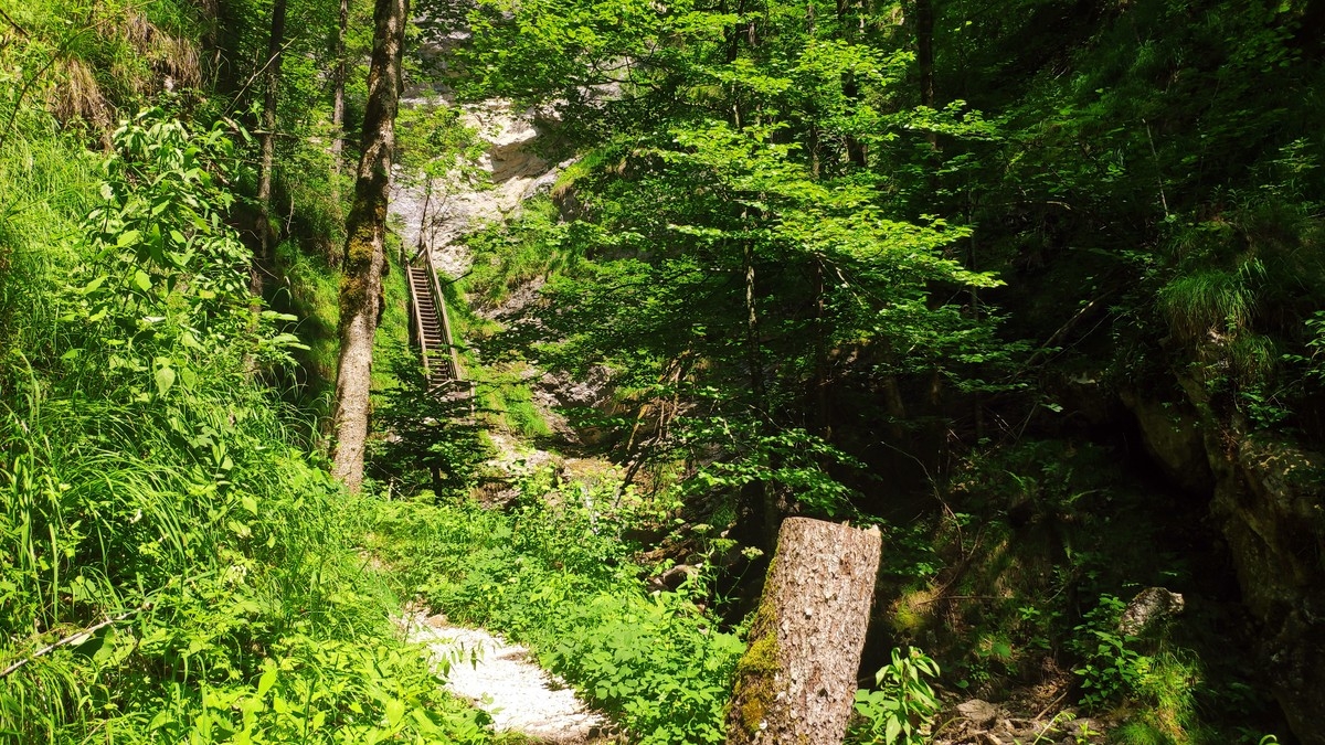 - Dort ein Stück auf Holztreppen bergauf bis zum Ende der Schlucht.