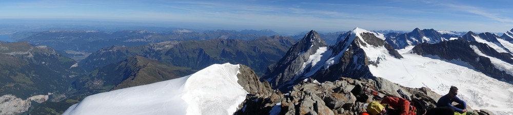 Kurze Routenbeschreibung: Mönchsjochhütte - Richtung Jungfraujoch - links abbiegen über Gletscher - kurze Kletterstelle - dann zumeist über den Gletscher und Südostgrat auf den Gipfel - gleicher Weg retour.