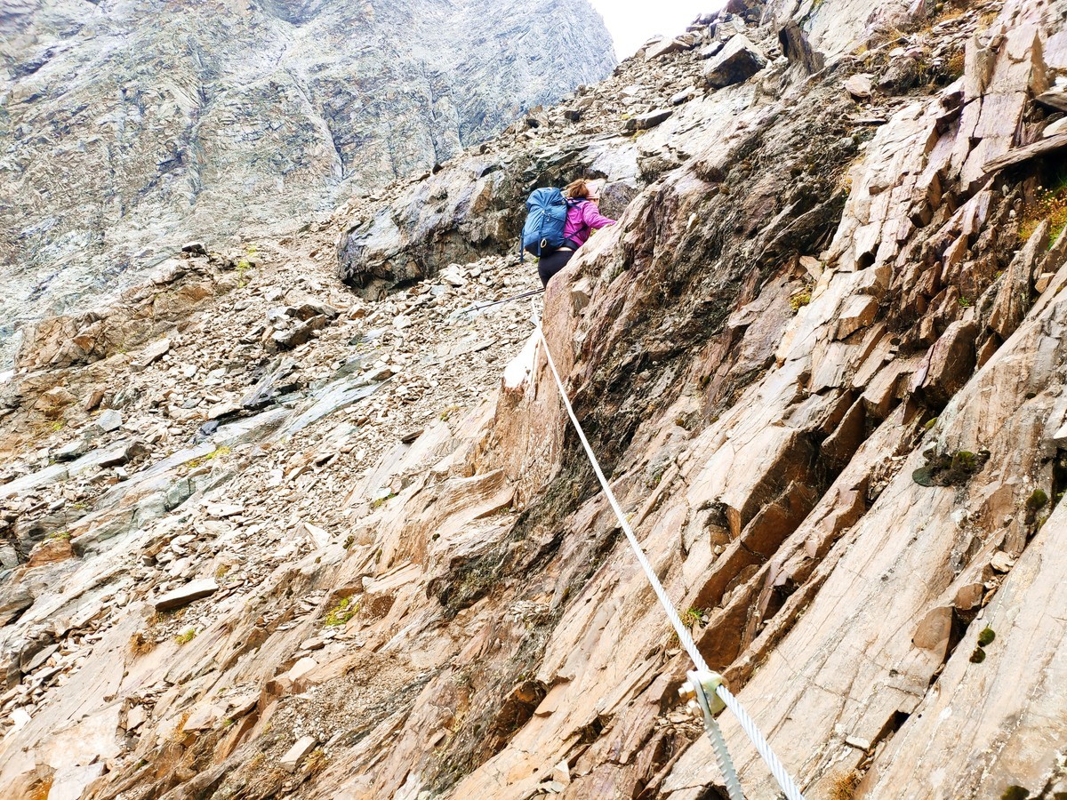 Die Kaunergrat-Runde ist bereits ohne die Gipfel sehr anspruchsvoll und ein alpiner Wanderweg, mit einigen Leitern und anspruchsvollen Abschnitten.