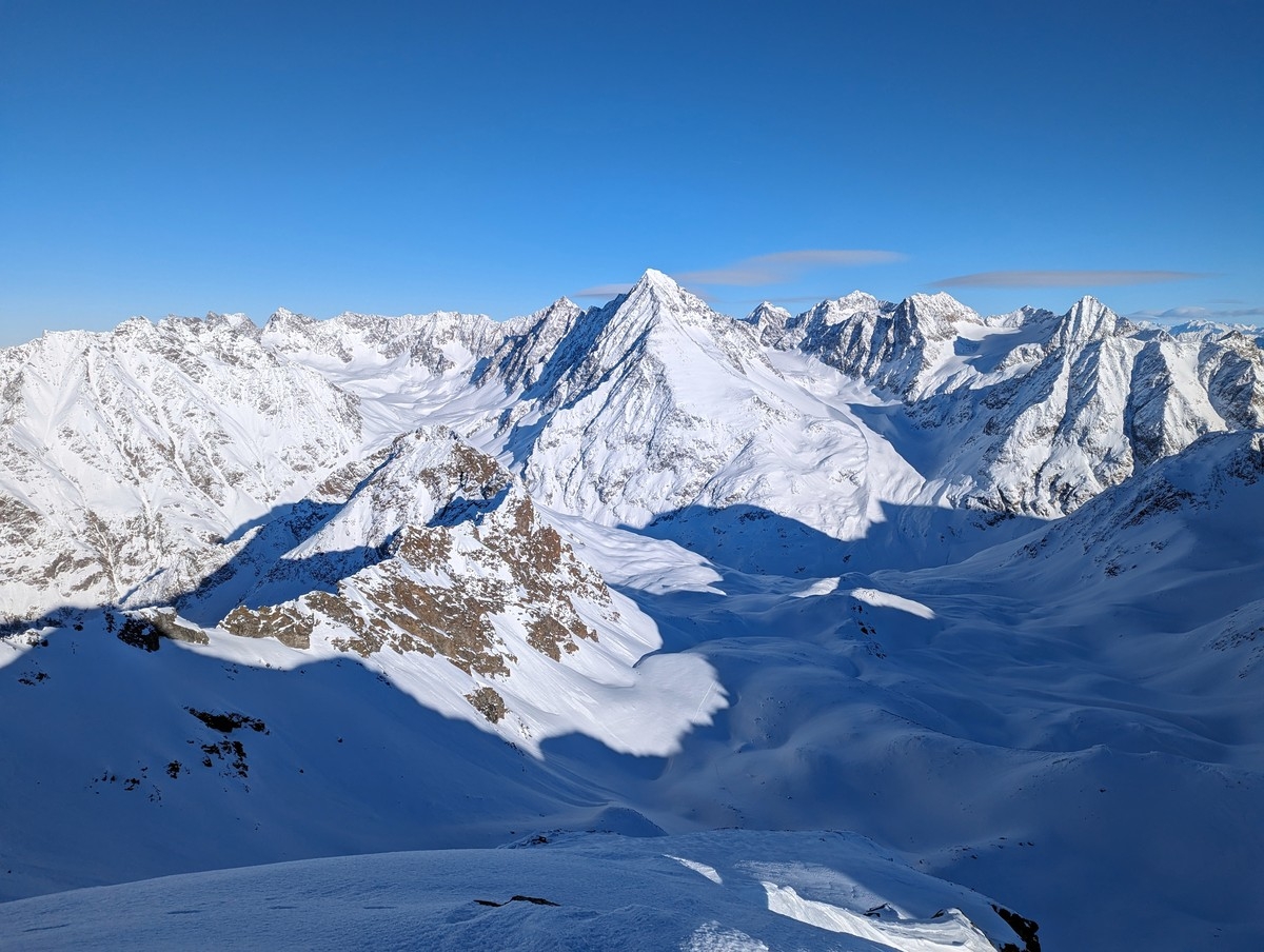- Ski-Depot kurz unterhalb des Gipfels und zu Fuß in wenigen Minuten zum Gipfel. Normalweise werden dafür keine Steigeisen benötigt.