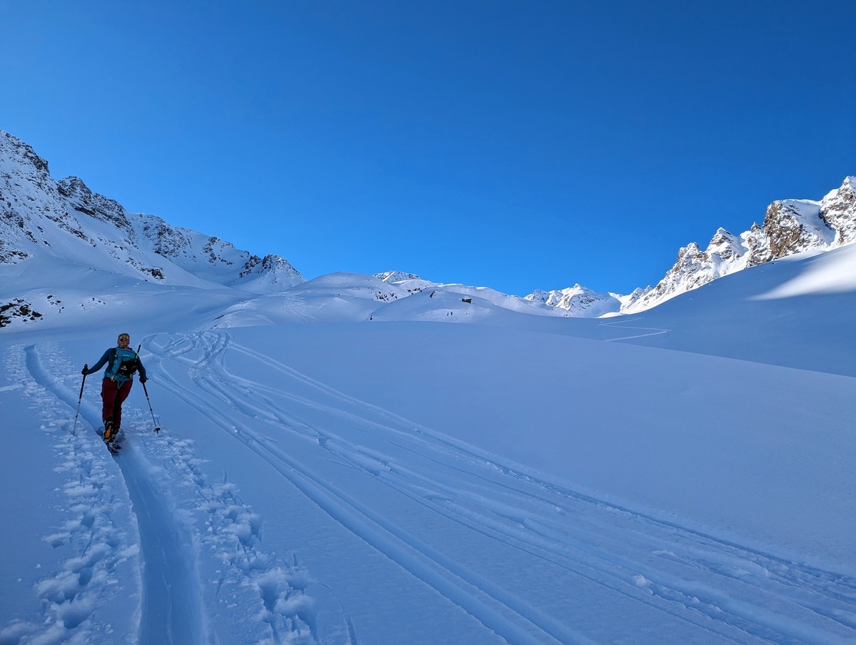 In Summe sind es gut 1.600 Höhenmeter, die zurückgelegt werden müssen. Aufgrund der zwei Steilhänge sollte die Tour nur bei sicherer Lawinenlage umgesetzt werden.