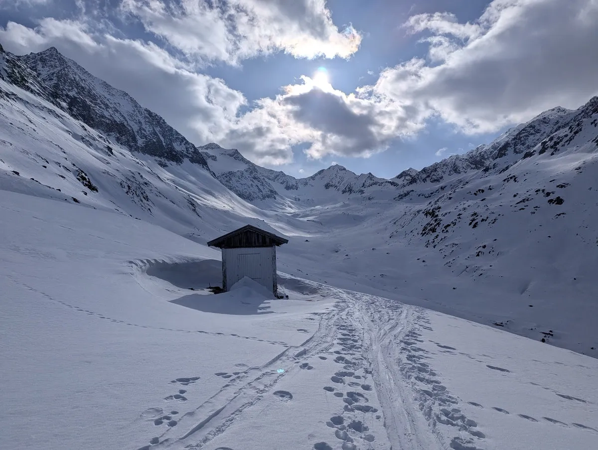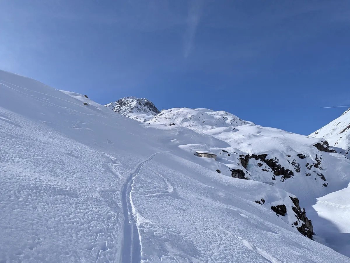 Mittel, nur bei sicherer Lawinenlage begehen. Niemand braucht unerwartete Abenteuer jenseits der Ski.
