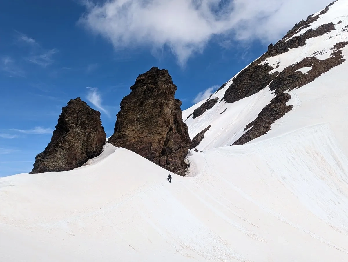 Im Frühsommer können die Schneemassen vom Winter den Schlussanstieg zum Gipfel (siehe Fotos) etwas erschweren. Da ist aber das Panorama noch deutlich vielfältiger als mitten im Sommer, zumal noch nicht ganz so viel Hochbetrieb herrscht.