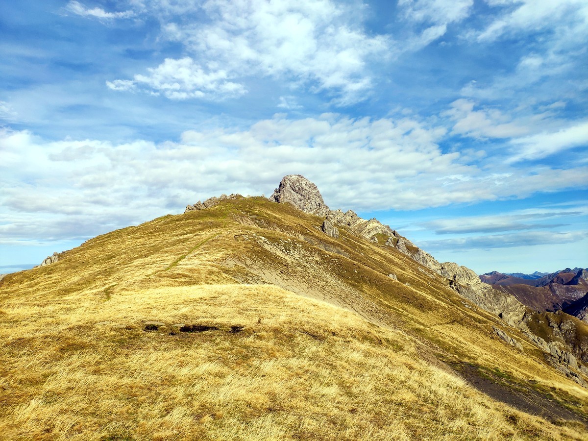 - Kurz vor dem Gipfel beginnen die kurzen Kletterpassagen. Der Einstieg zum versicherten Steig (Klettersteig) befindet sich beim letzten Aufschwung etwas versteckt auf der linken Seite.