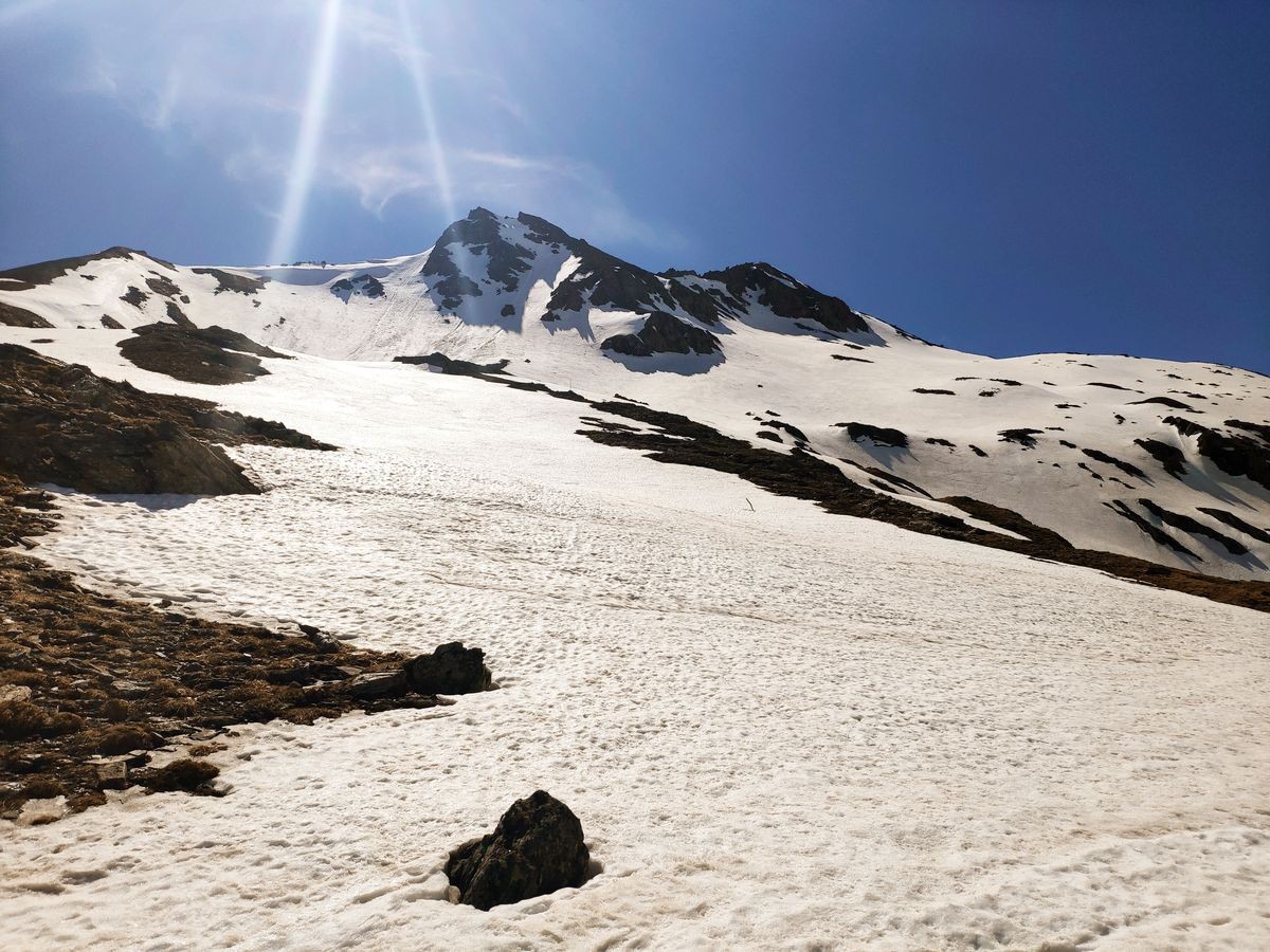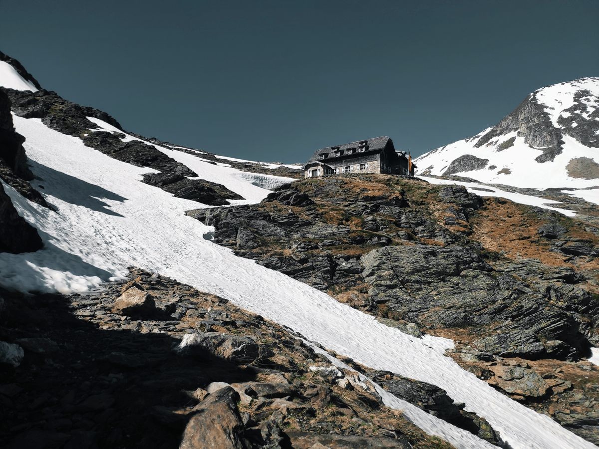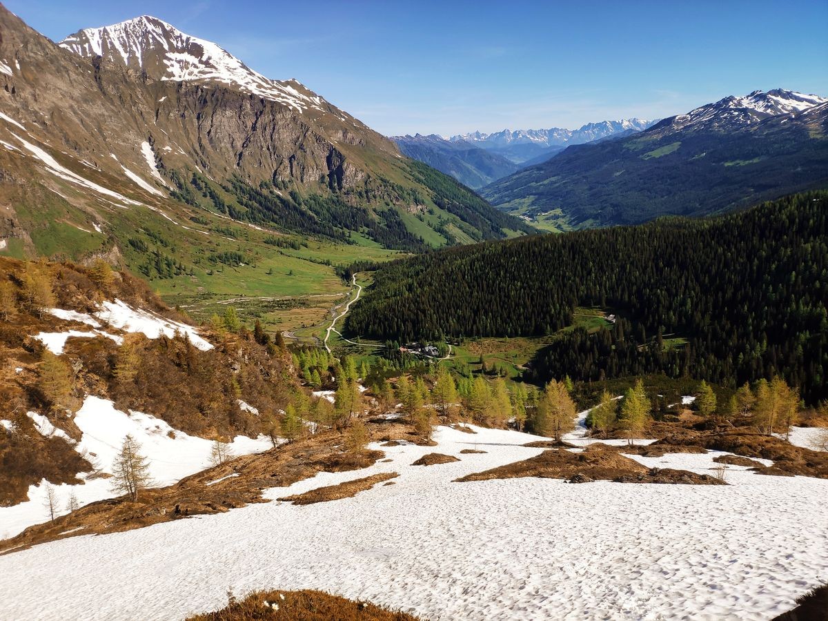 - Auf der Fraganter Scharte könnte man nun links auf die Herzog-Ernst-Spitze (2.933 m) aufsteigen und nun dem Grat (beschildert) zum Schareck folgen. Diese Route ist deutlich kürzer, aber bei Schnee im Worst Case nicht zu begehen (war Mitte Juni 2021 der Fall). Ansonsten von der Fraganter Scharte den Tauern Höhenweg Richtung Duisburger Hütte absteigen