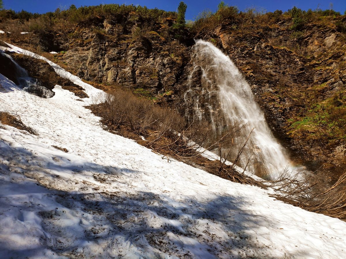 Die einzige Einkehrmöglichkeit gibt es sehr weit unten, sowohl im Aufstieg als auch im Abstieg bei der Schutzhütte Neubau. Dazwischen sollte man sich auf eine lange Tour gefasst machen, die im Sommer stark der Sonne ausgesetzt ist. Dementsprechend viel Flüssigkeit mitnehmen.
