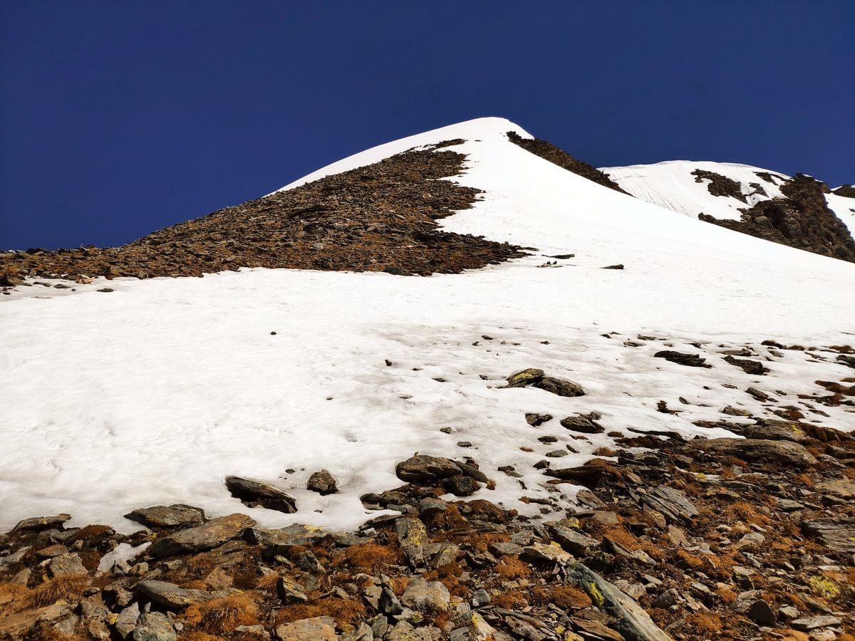 Einfache, aber sehr lange Tour, die im Sommer bei guten Bedingungen mit der direkten Besteigung über den Grat deutlich verkürzt werden kann.