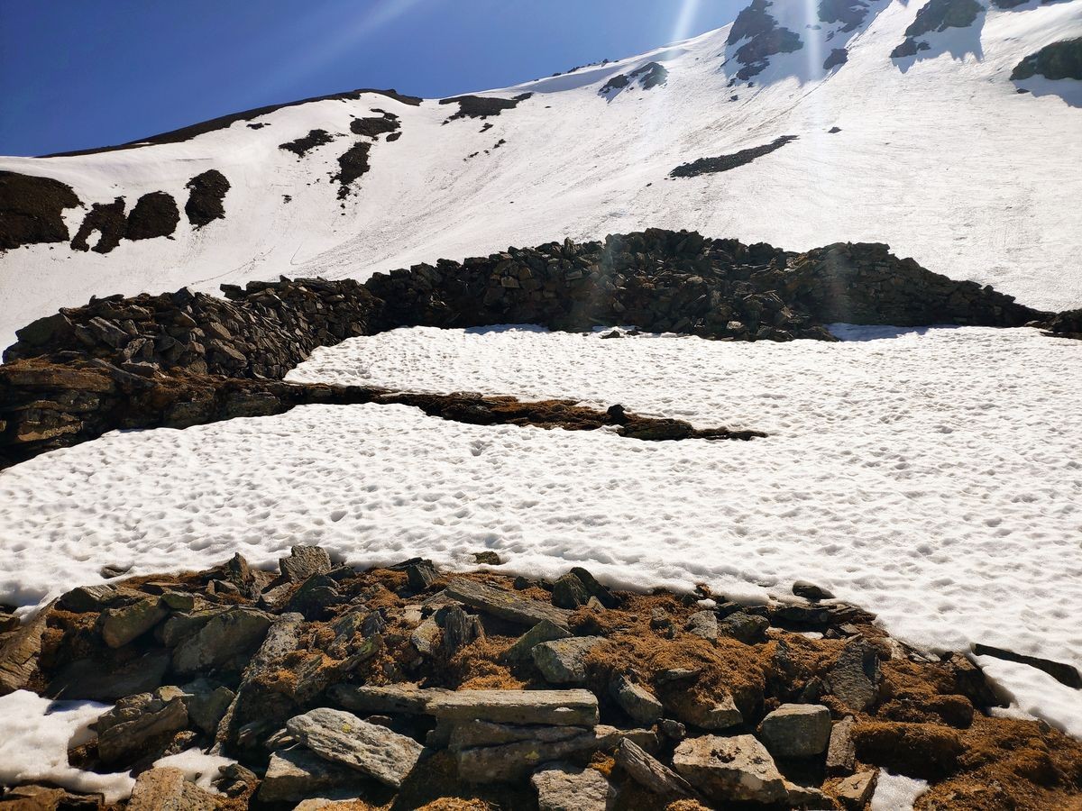 - Nun den linken Weg (rote Markierungen) folgen, der an einigen Stollen vorbei führt bis zur Fraganter Scharte (2.750 m)