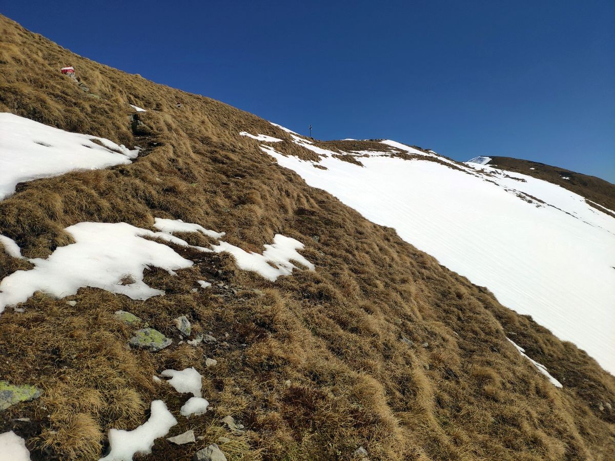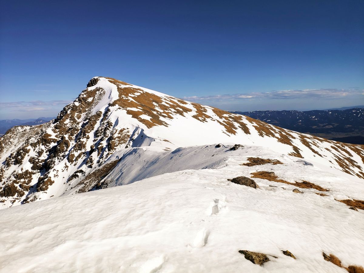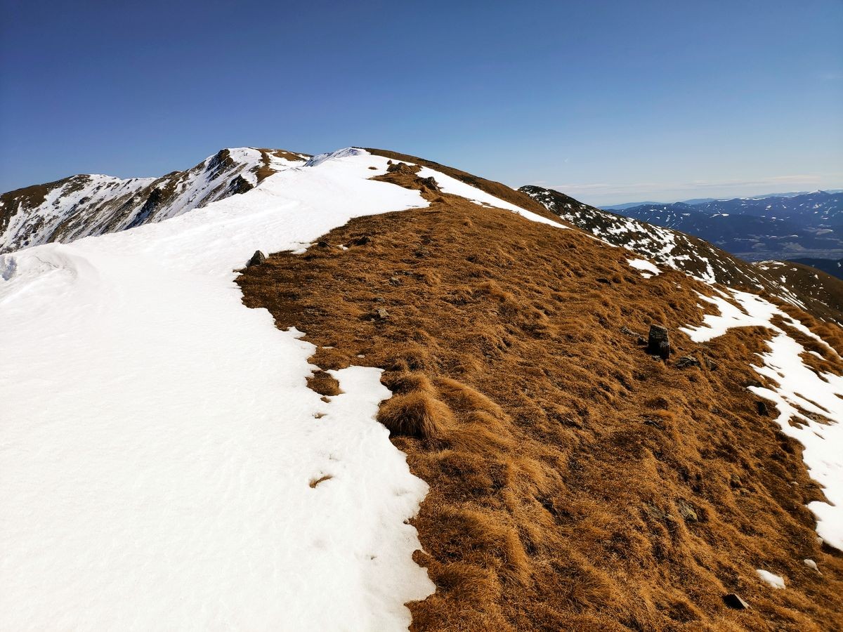 Wer nun noch genug Kondition hat, kann rund 700 Meter weiter bis zum Kleinen Zinken gehen (ohne Gipfelkreuz) und wieder retour zum Hauptgipfel.