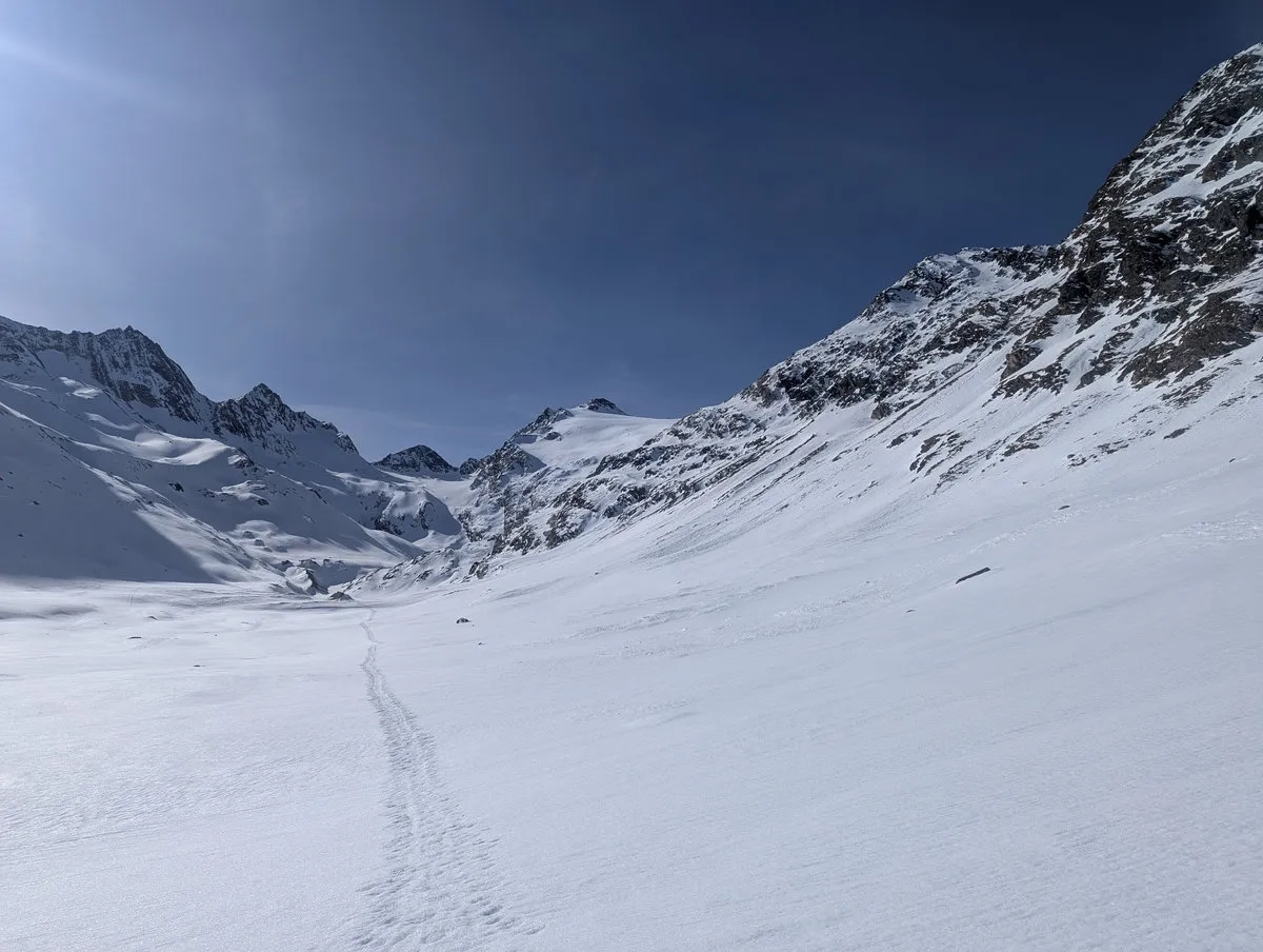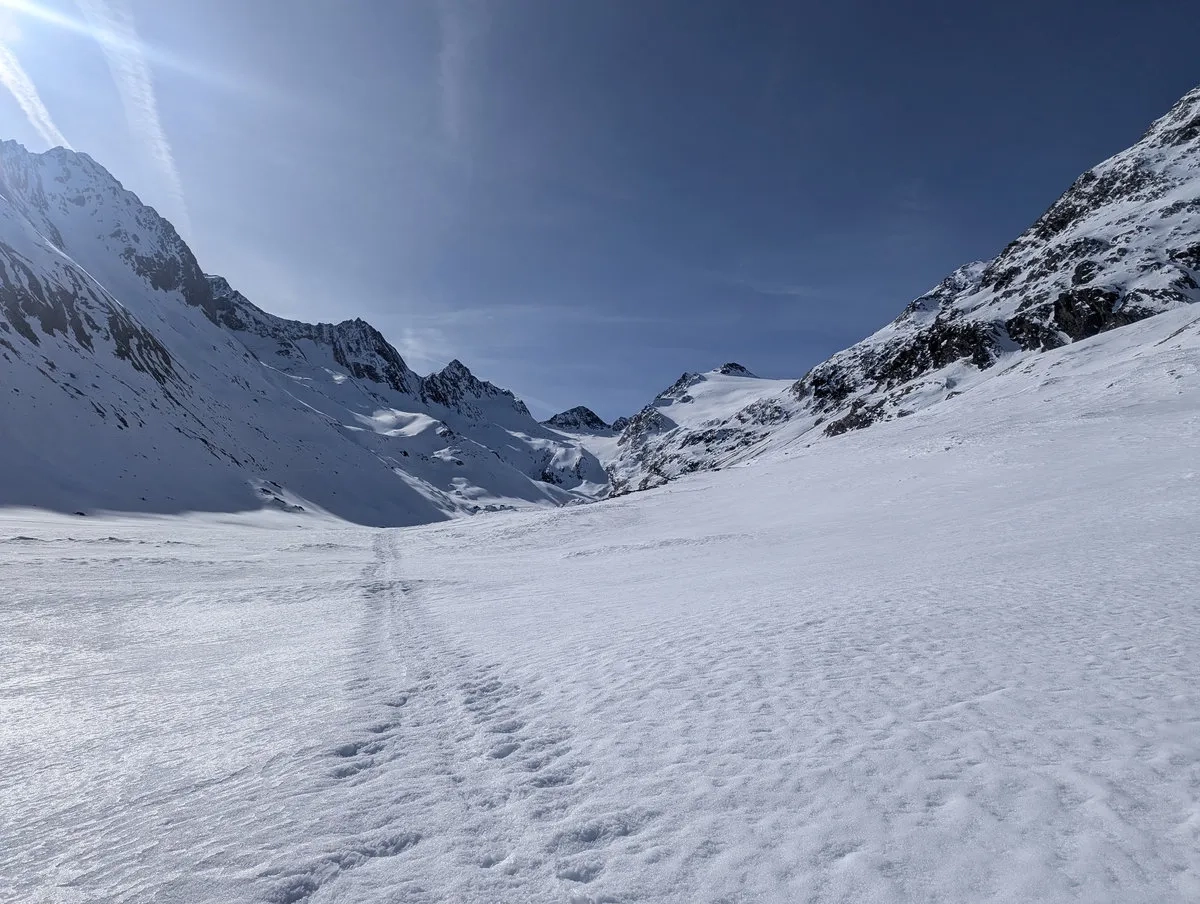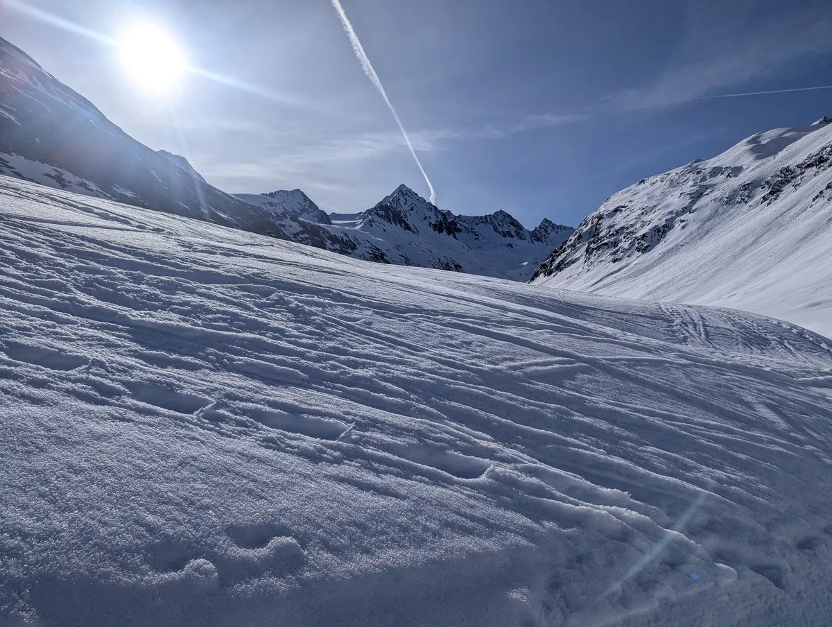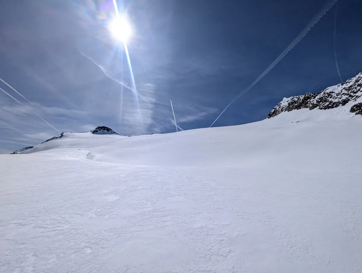 Mit etwas Glück sind die Bedingungen gut und der Abschnitt lässt sich halbwegs angenehm bewältigen. Trotzdem sollte man sich nicht täuschen lassen: Die Tour verlangt Erfahrung, eine saubere Einschätzung der Verhältnisse und eine Portion Respekt vor dem Gelände. Wer das mitbringt, wird dafür mit einer großartigen Skitour belohnt.