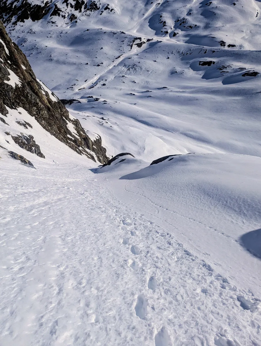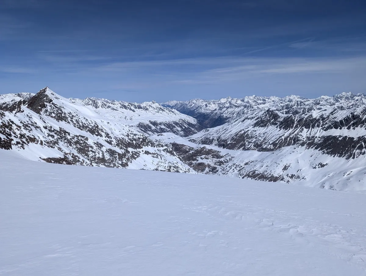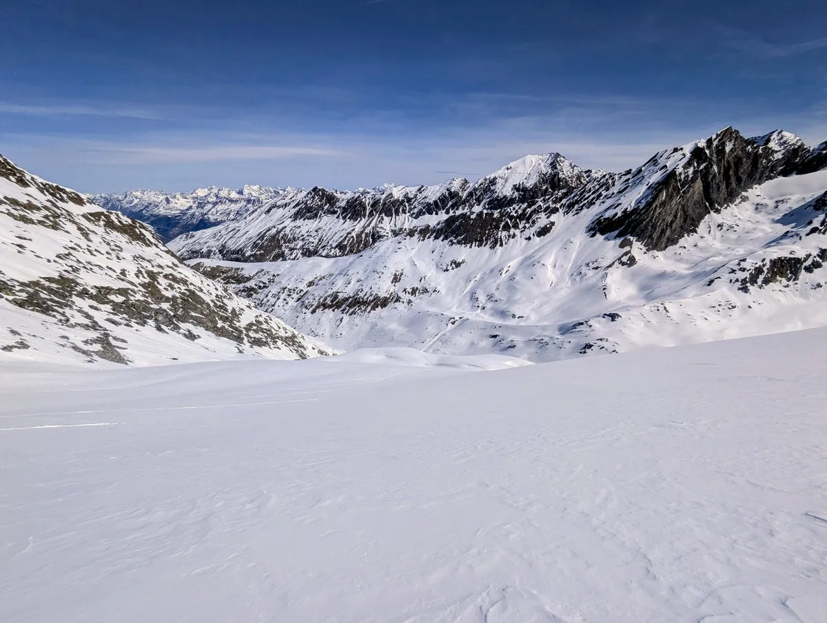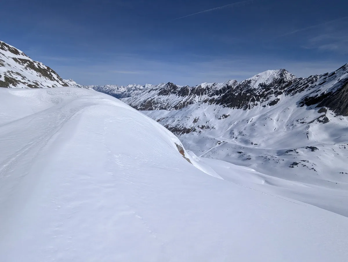 Mit etwas Glück sind die Bedingungen gut und der Abschnitt lässt sich halbwegs angenehm bewältigen. Trotzdem sollte man sich nicht täuschen lassen: Die Tour verlangt Erfahrung, eine saubere Einschätzung der Verhältnisse und eine Portion Respekt vor dem Gelände. Wer das mitbringt, wird dafür mit einer großartigen Skitour belohnt.