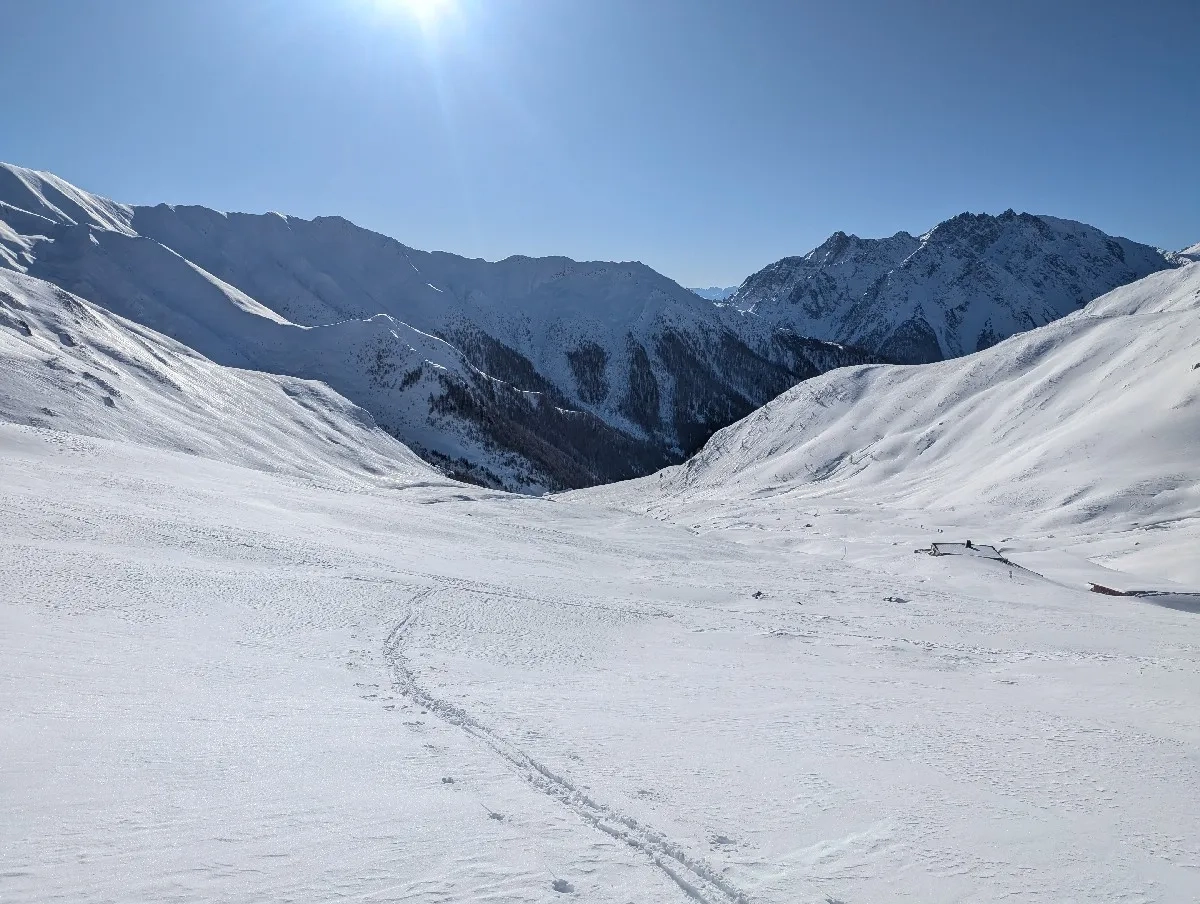 - Das Gelände bleibt variantenreich: Wer es steiler mag, kann direktere Routen wählen, wer lieber genussvoll aufsteigt, findet sanftere Passagen. Aus Sicherheitsgründen sollte natürlich im Aufstieg immer die flachste Variante gewählt werden.