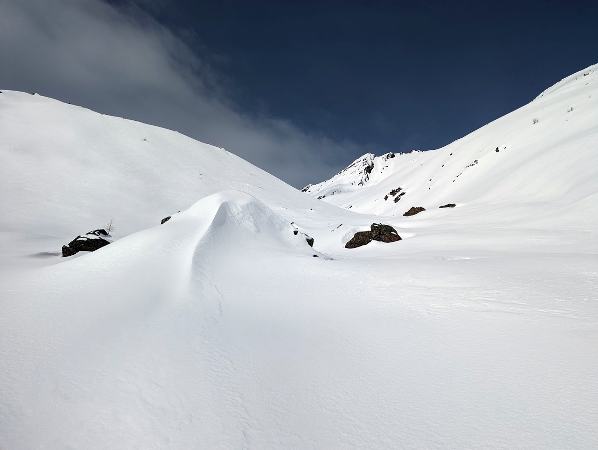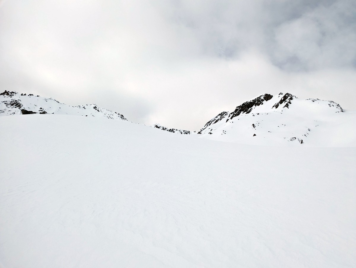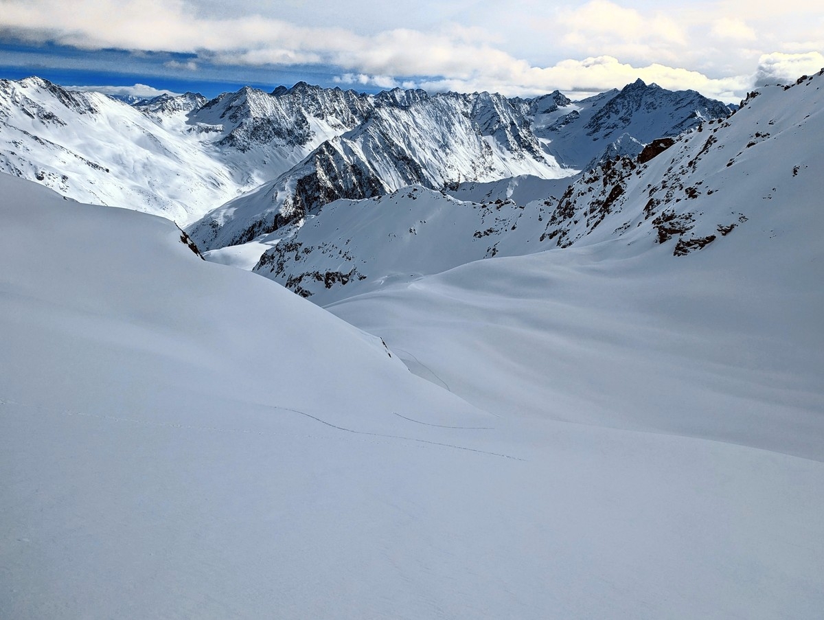 Die Hänge danach sind aber nicht zu unterschätzen. Vor allem der Schlussabschnitt sollte nur bei sicherer Lawinenlage begangen werden (Stufe 1 - 2).