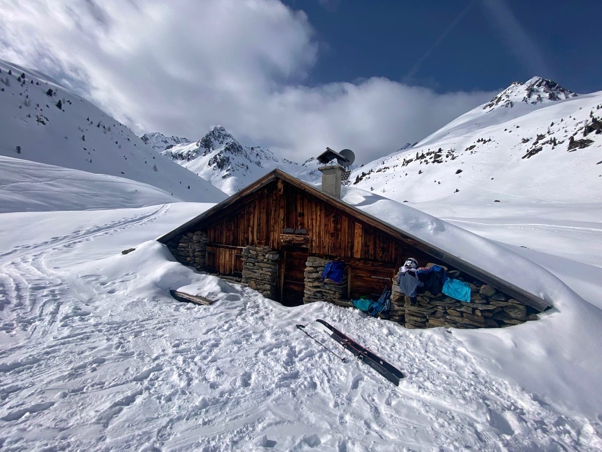 - Wer nun noch bei der Schweinfurter Hütte einkehren möchte, muss zusätzlich rund 80 Höhenmeter auf der Rodelbahn aufsteigen. Am besten mit den Skiern am Rucksack. Anfellen lohnt sich für die paar Minuten nicht.