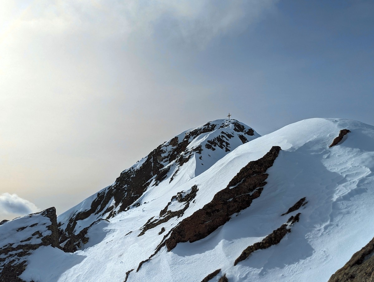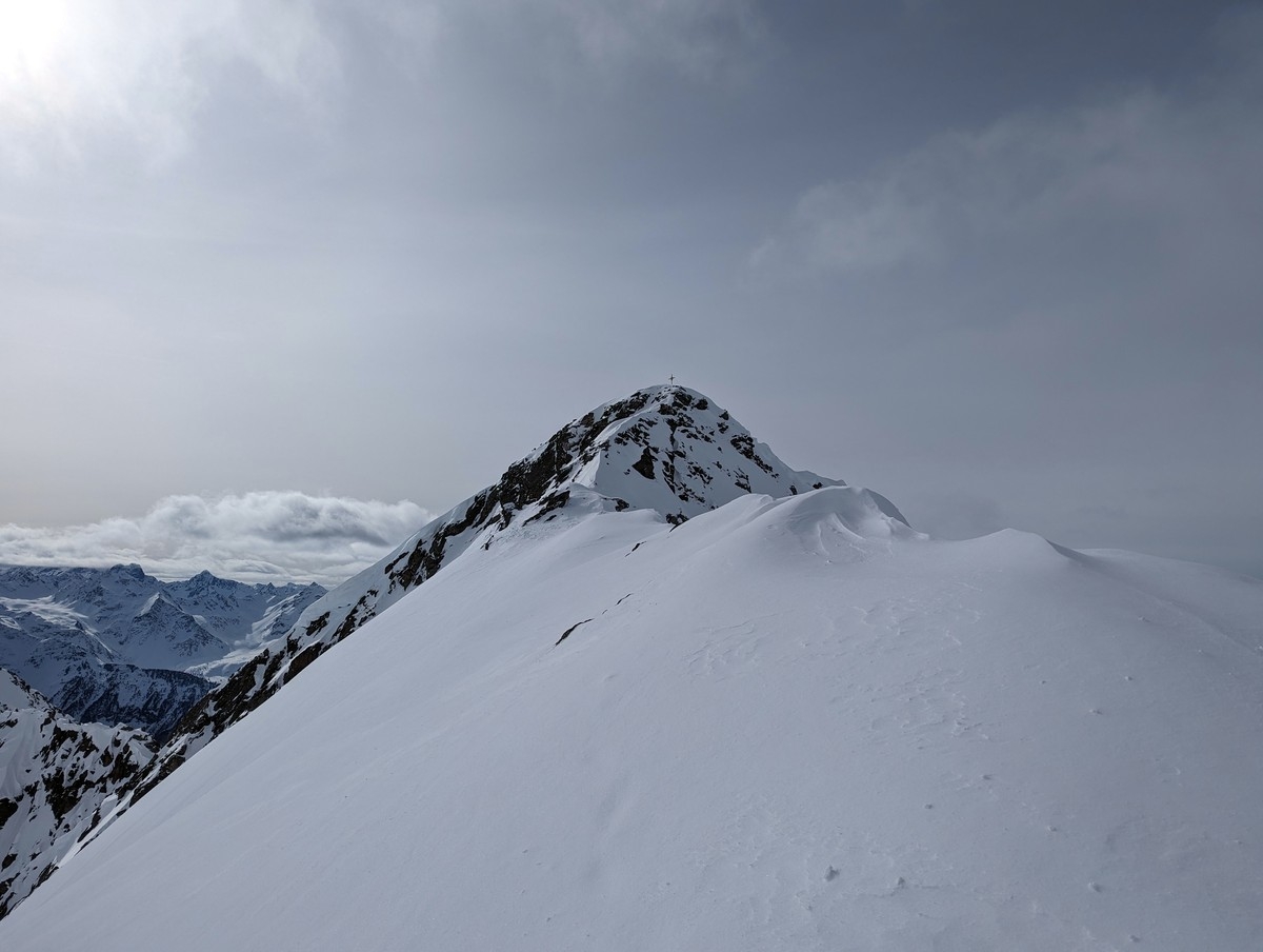 Nach dem letzten Steilhang führen die letzten rund 15 Höhenmeter über einen Grat zum Gipfel, welcher bei ungünstigen Schneebedingungen nur schwer begehbar ist.