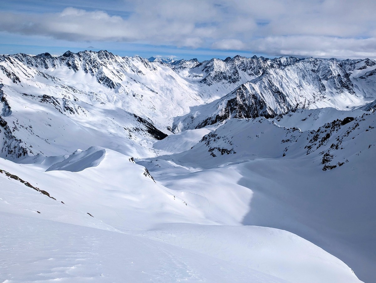 Der 3.010 Meter hohe Hochreichkopf ist einer von vielen Skitourengipfel, die von Niederthai aus erreicht werden können.