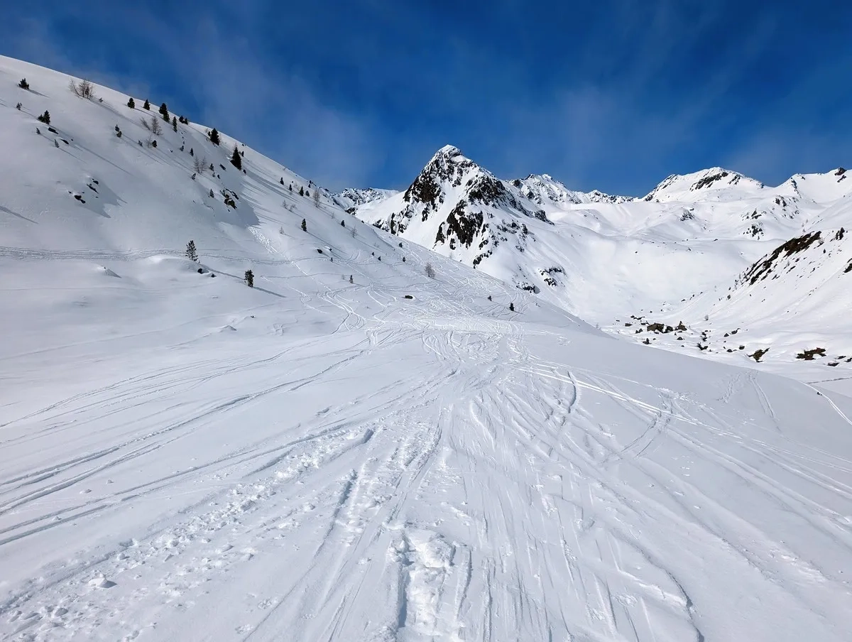 Lange, aber großteils technisch wenig bis mittelmäßig anspruchsvoll. Einzig der Schlussabschnitt ist deutlich steiler und die Gipfelrinne anspruchsvoller. Über die Rinne wird oftmals ohne Skier aufgestiegen. Die Abfahrt von der Rinne ist aber normalerweise gut befahrbar.