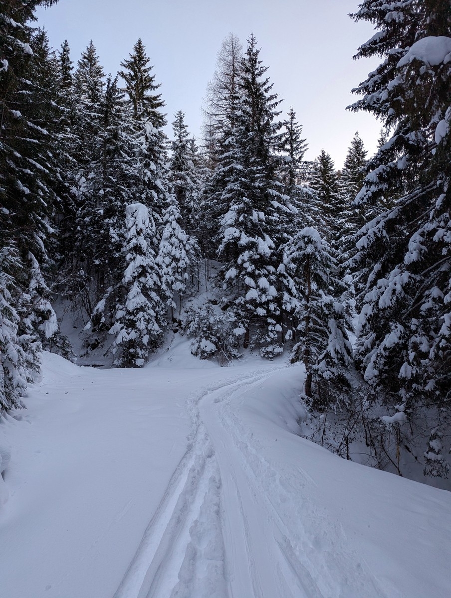 Der Aufstieg zur Hütte ist nicht nur ein sportliches Vergnügen, sondern führt durch idyllische Wälder und offenes Gelände, das in den Wintermonaten ein wahres Postkartenmotiv bietet. Und wer Lust auf Abenteuer hat, findet bei der Abfahrt zahlreiche Varianten, die den Puls in die Höhe treiben.