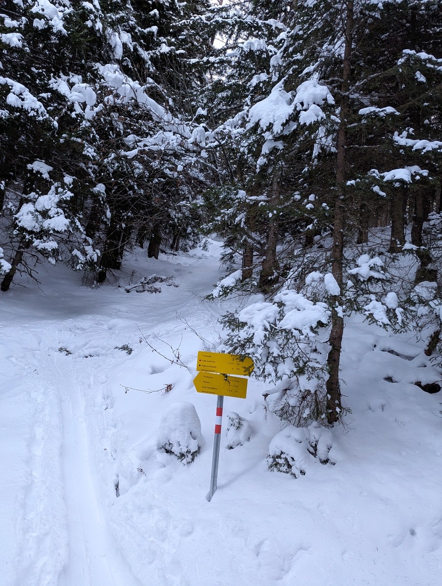 - Waldpassage: Nach einem kurzen Stück auf der Rodelbahn führt die Route bei einer Beschilderung rechts auf einen Forstweg. Bei der nächsten Markierung geht es links auf einem steileren Waldweg weiter Richtung Proxenalm.