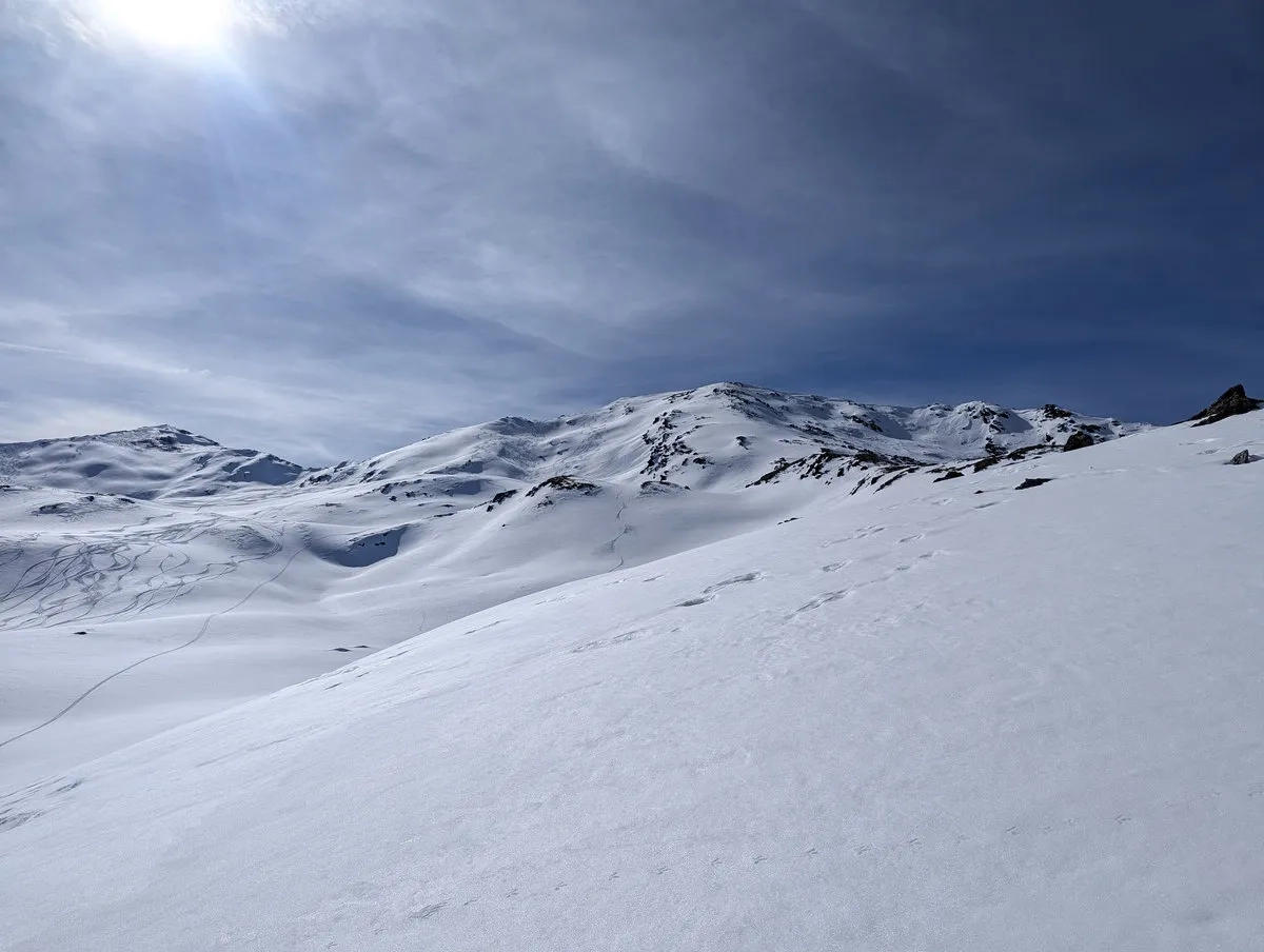 Ganz besonders motivierte Skitourengeher können vom Sömen auch noch einmal etwa 200 Meter Richtung Osten abfahren - ein wirklich schöner Hang - und anschließend erneut auf den Gipfel aufsteigen. Kondition ist also definitiv kein Nachteil.