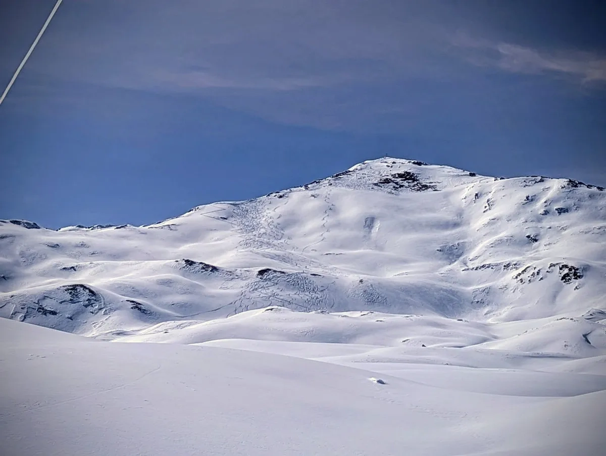 - Wer noch immer genügend Energie hat, fährt vom Sömen etwa 200 bis 250 Meter über den östlichen Gipfelhang wieder Richtung Osten ab und steigt anschließend erneut zum Sömen auf. Alternativ erfolgt die Abfahrt wieder Richtung Roter Kogel. Wichtig: Viele Abfahrtsspuren auf der Westseite führen Richtung Juifenalm. Das bedeutet mehrere Kilometer Fußmarsch zurück Richtung Süden. Deshalb in der Abfahrt eher links halten, bis man wieder auf die Aufstiegsspur trifft.