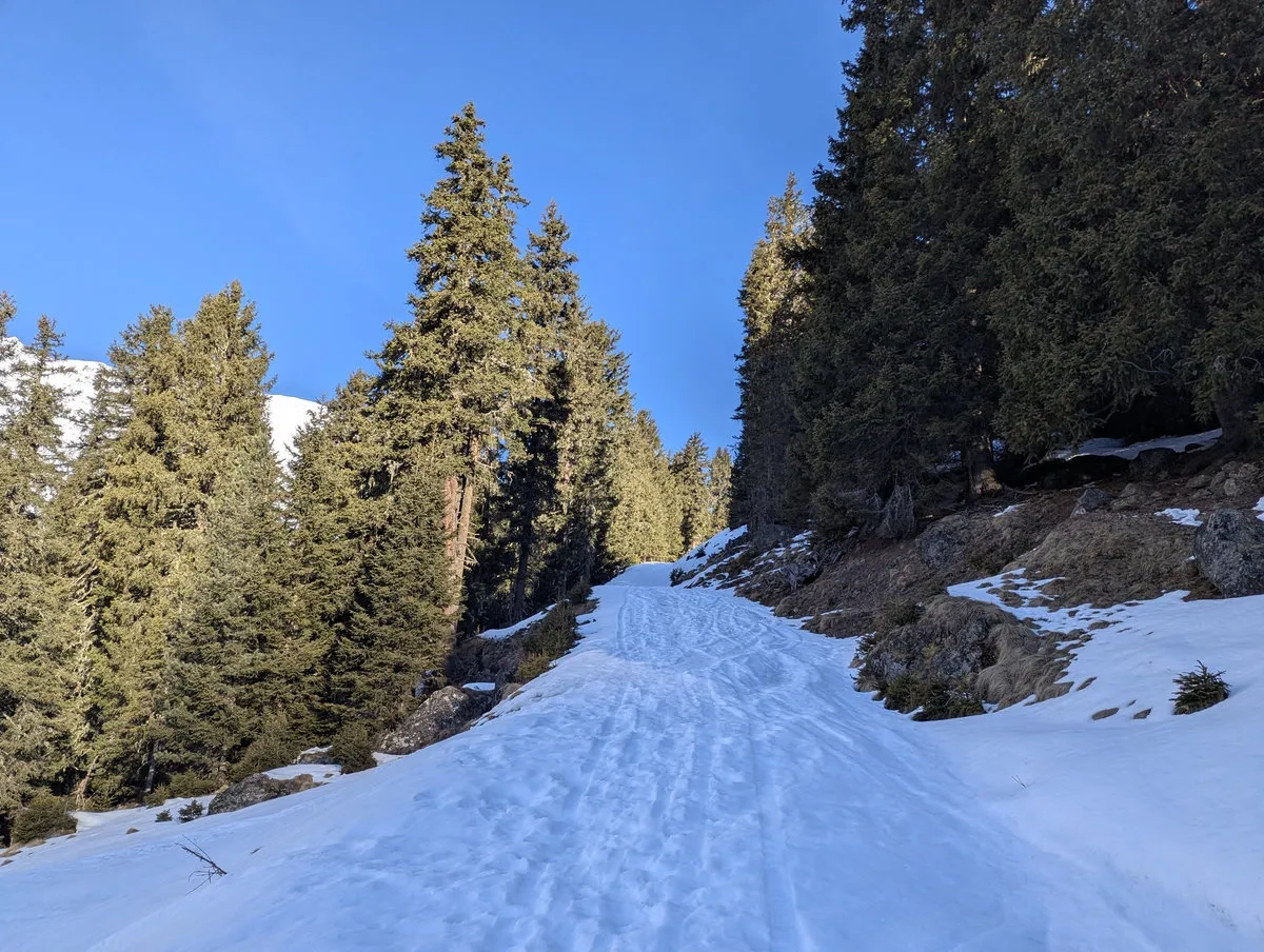 - Start beim gebührenpflichtigen Parkplatz Moos (unterhalb von Praxmar) beim Zirnsteig. Gleich zu Beginn muss man am Abschnitt Richtung Alfinger Alm mit vereisten Passagen rechnen. Wer schummeln möchte: Etwas weiter südlich vom Parkplatz führt auch eine Forststraße bis zur Alfinger Alm, dann spart man sich bereits Stress zu Beginn.