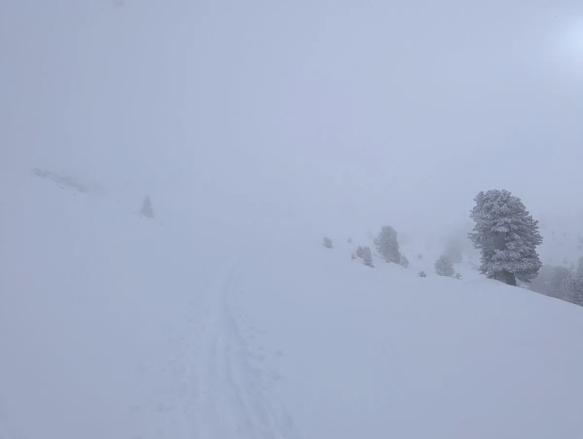 Tipp für Ausdauernde: Bei guten Verhältnissen kann man vom Gipfel auch Richtung Osten ein Stück abfahren und anschließend wieder aufsteigen. Das Gelände sieht auf jeden Fall sehr verlockend aus, vorausgesetzt, man hat nach den ersten 1.300 Höhenmetern noch nicht genug vom "Auffellen".